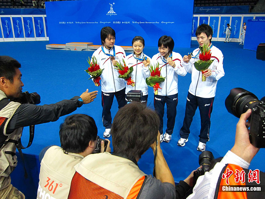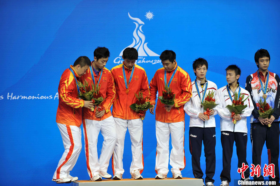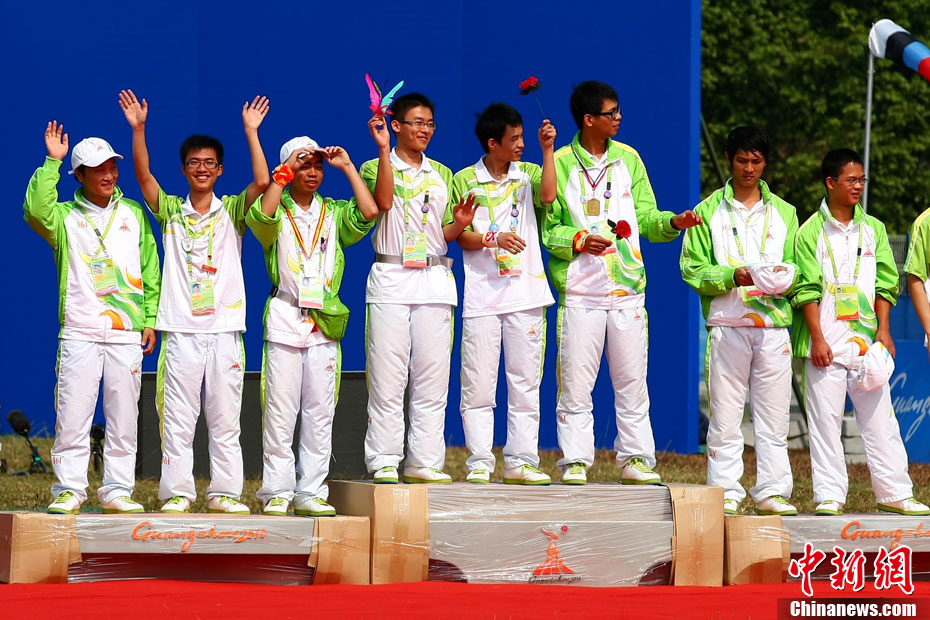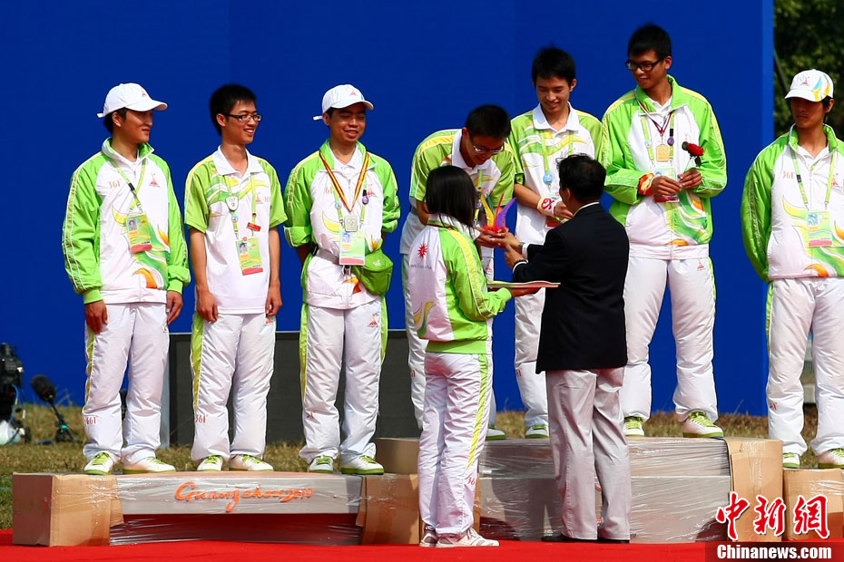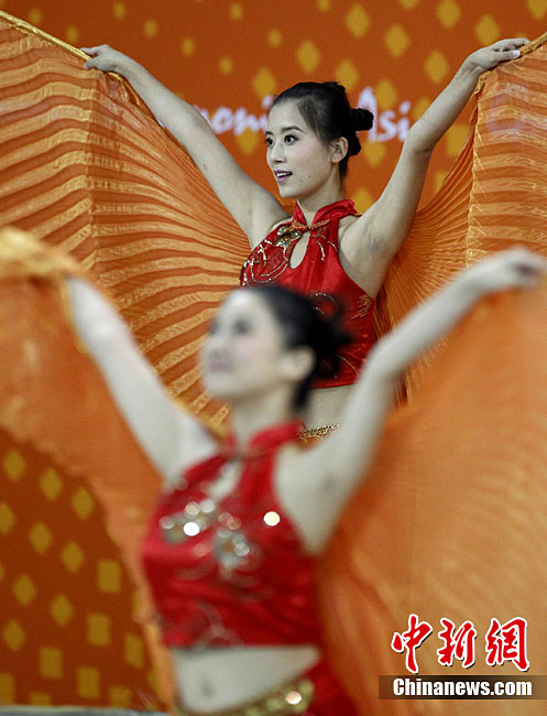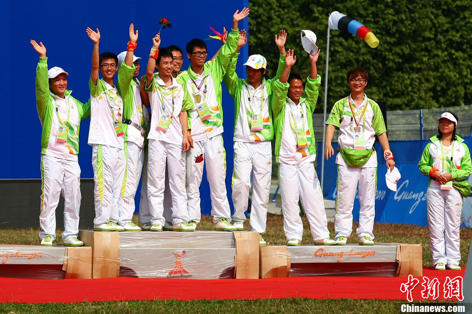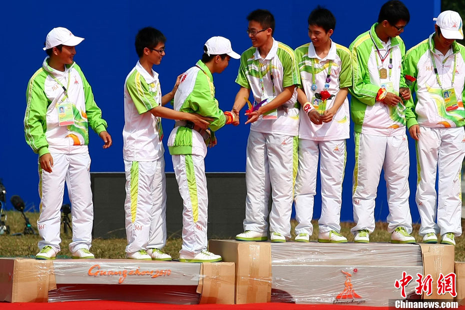 亞運(yùn)花絮:頒獎禮儀小姐吸引獲獎運(yùn)動員