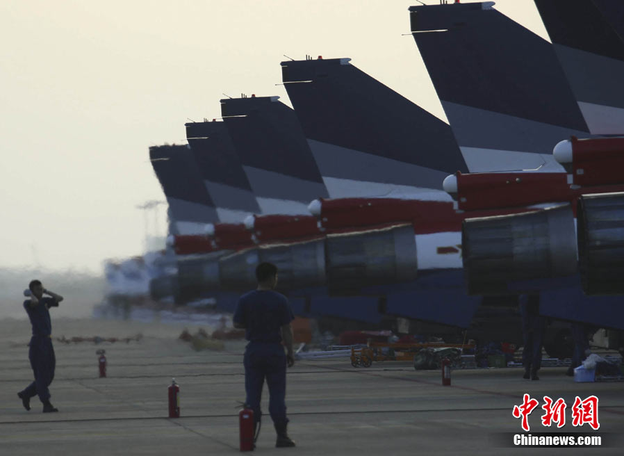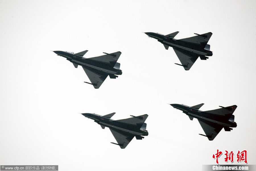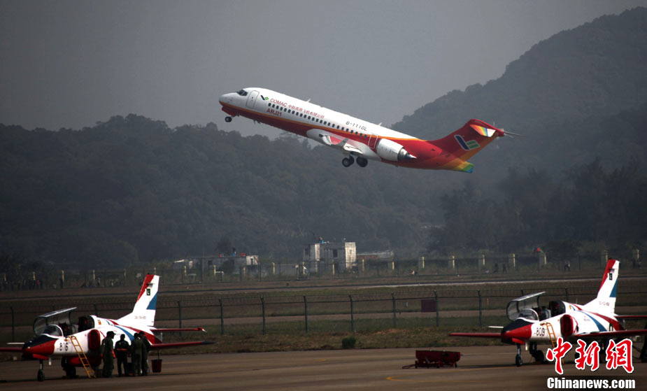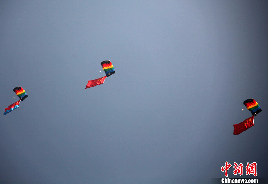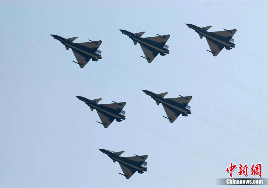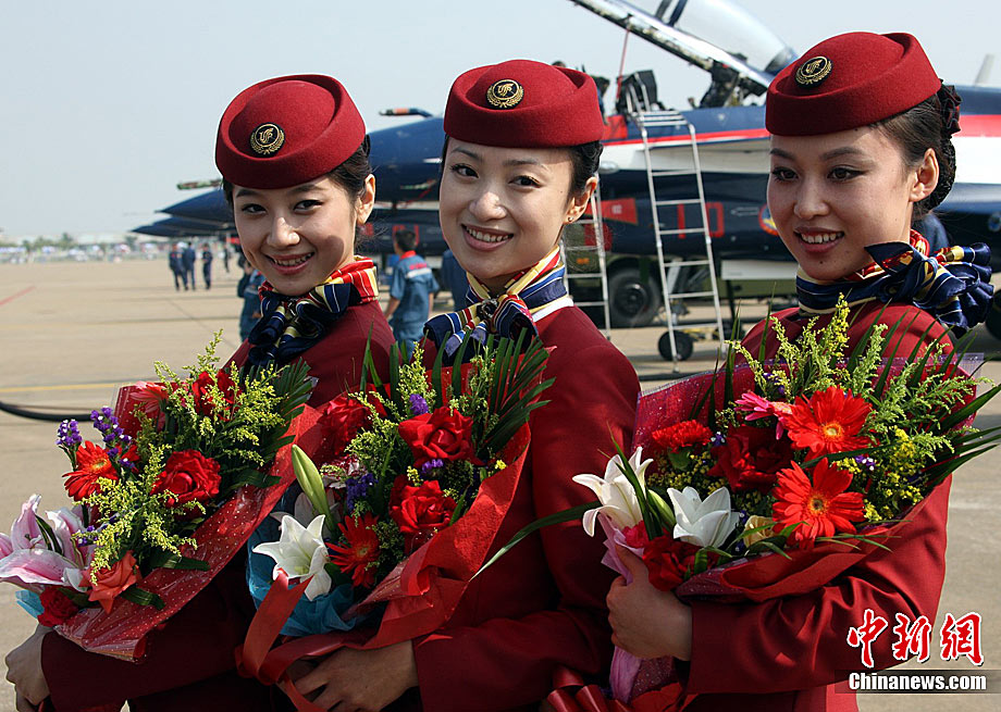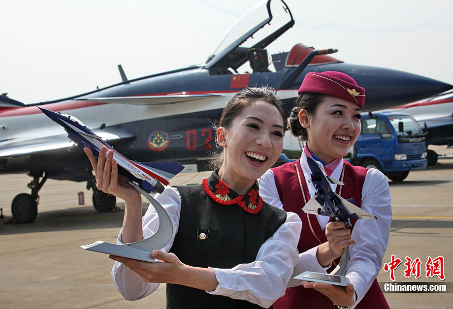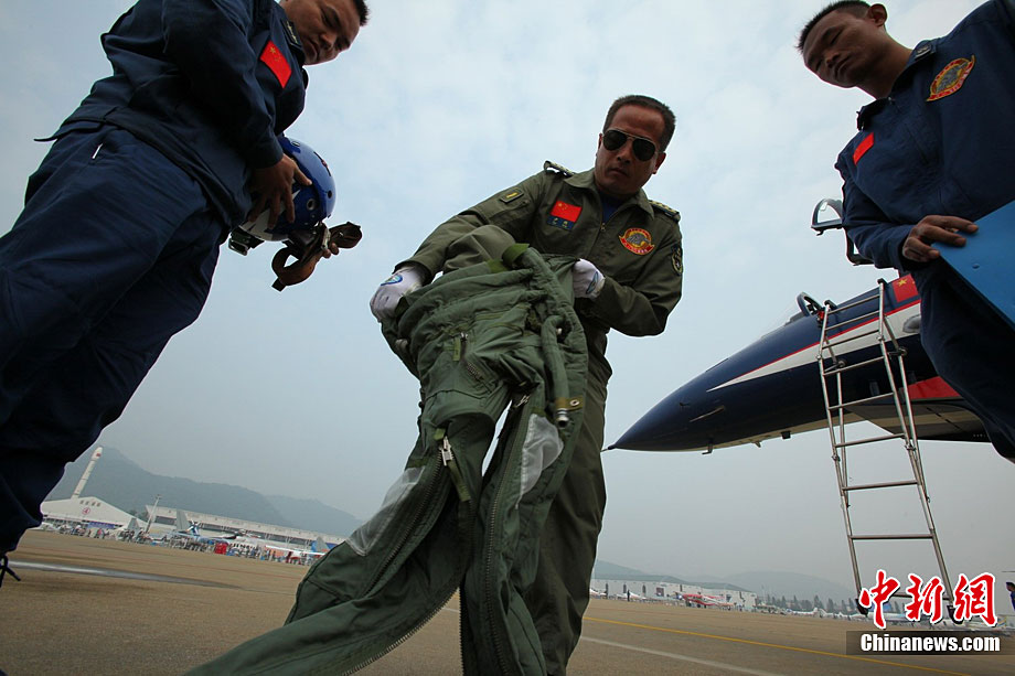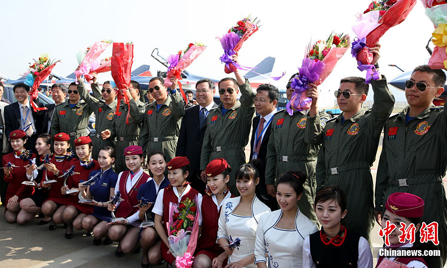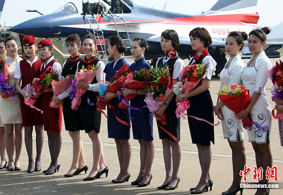 11月19日,在珠海第8屆中國國際航空航天博覽會上,巴基斯坦空軍雄獅飛行表演隊的空中英豪們駕駛k8教練機,憑借高超的飛行技藝,以珠海機場上空為舞臺,承、轉、啟、合,任意揮灑,給觀看的中外賓客以視覺享受。中新社發 喬天富 攝 圖片來源:CNSPHOTO