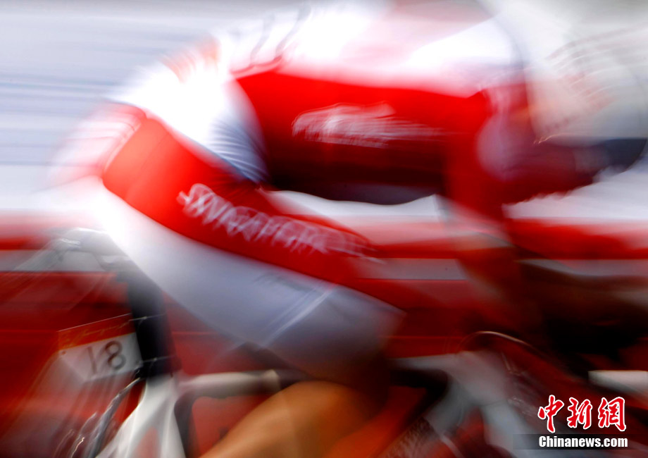 11月20日,廣州亞運會男子公路個人計時賽中的動感瞬間,仿佛將人帶入一個新奇的科幻世界。中新社記者 杜洋 攝