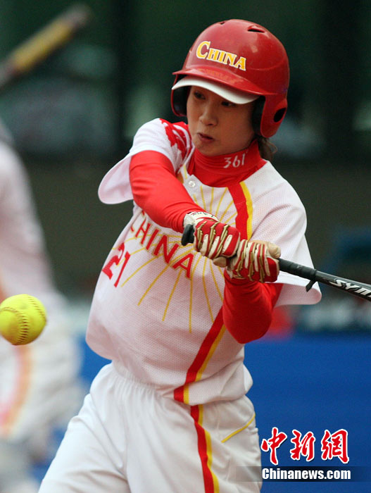 11月20日,廣州亞運會壘球預賽第5場,中國隊以9比0戰勝泰國隊,取得預賽2連勝。中國隊譚瑛揮棒擊球。中新社記者 湯彥俊 攝