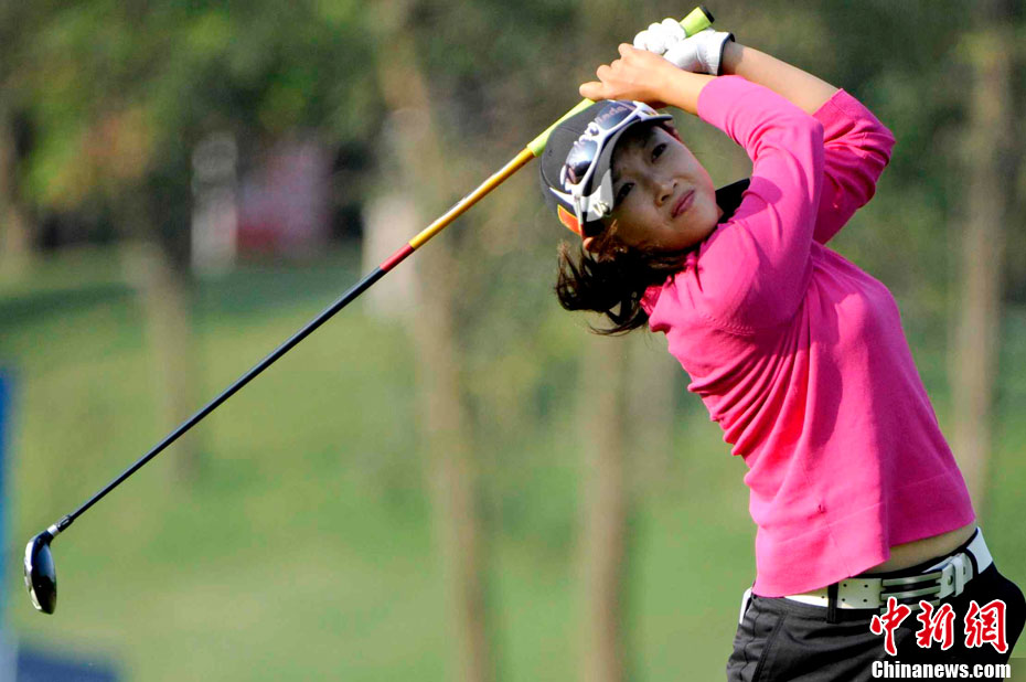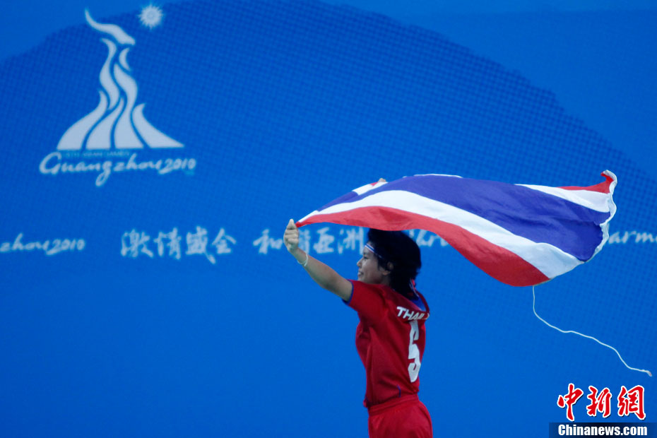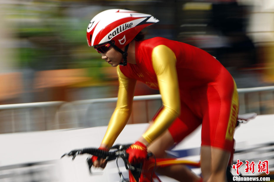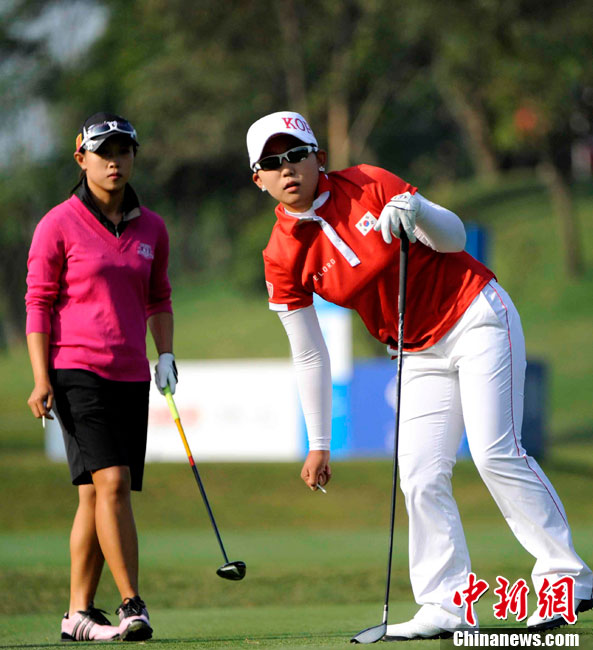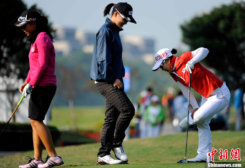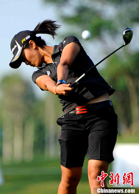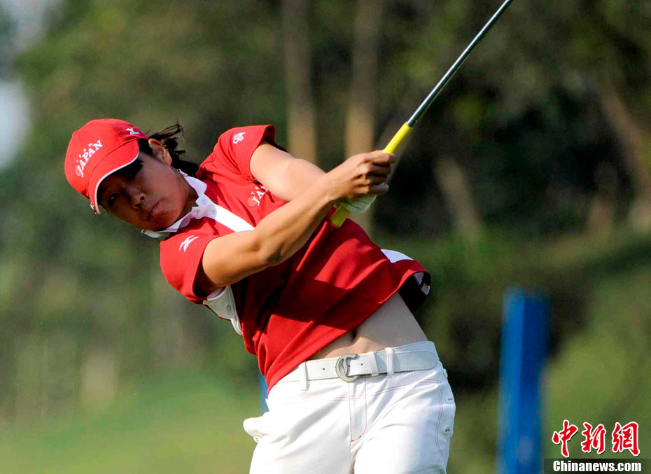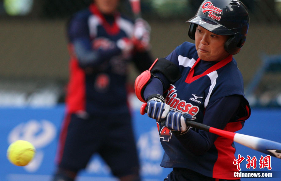 11月20日,廣州亞運會壘球預賽第4場,中華臺北隊以9比2戰勝菲律賓隊。中華臺北隊員林佩君揮棒擊球。 中新社記者 湯彥俊 攝