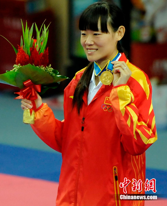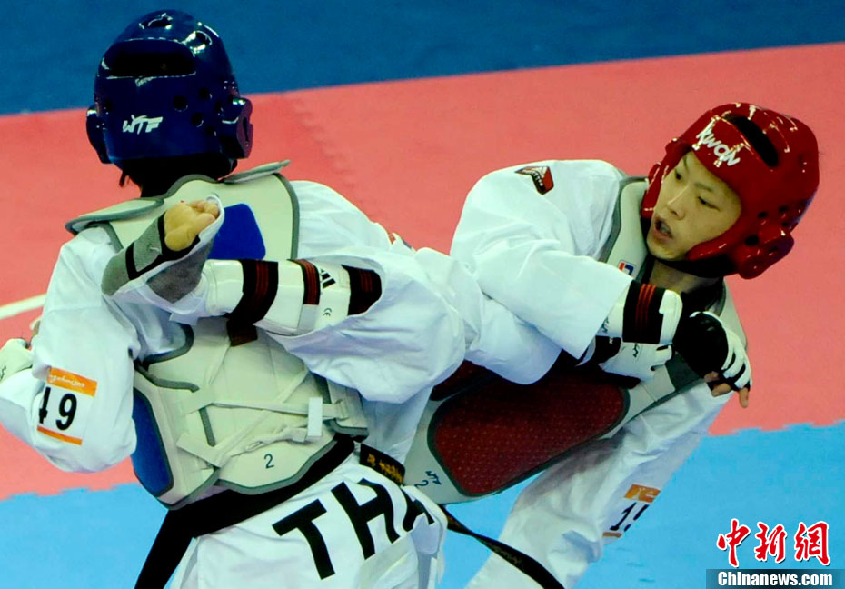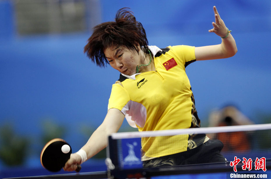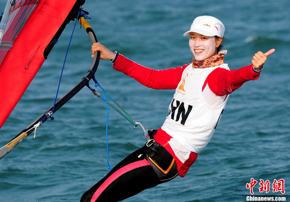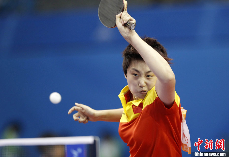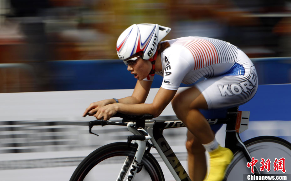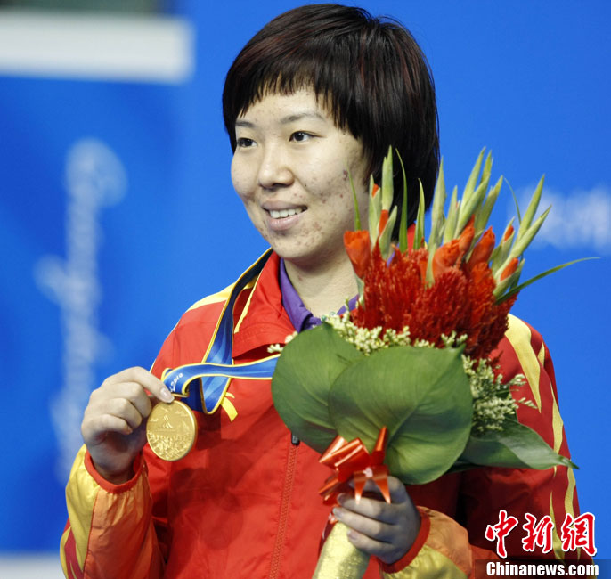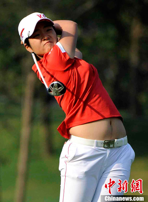11月20日,廣州亞運會壘球預賽第4場,中華臺北隊以9比2戰勝菲律賓隊。中華臺北隊員林佩君揮棒擊球。 中新社記者 湯彥俊 攝