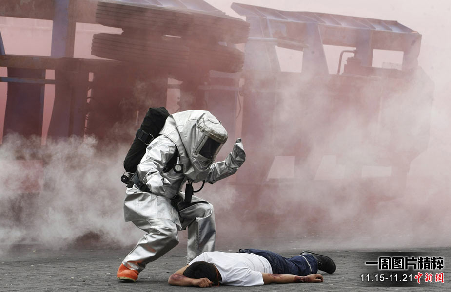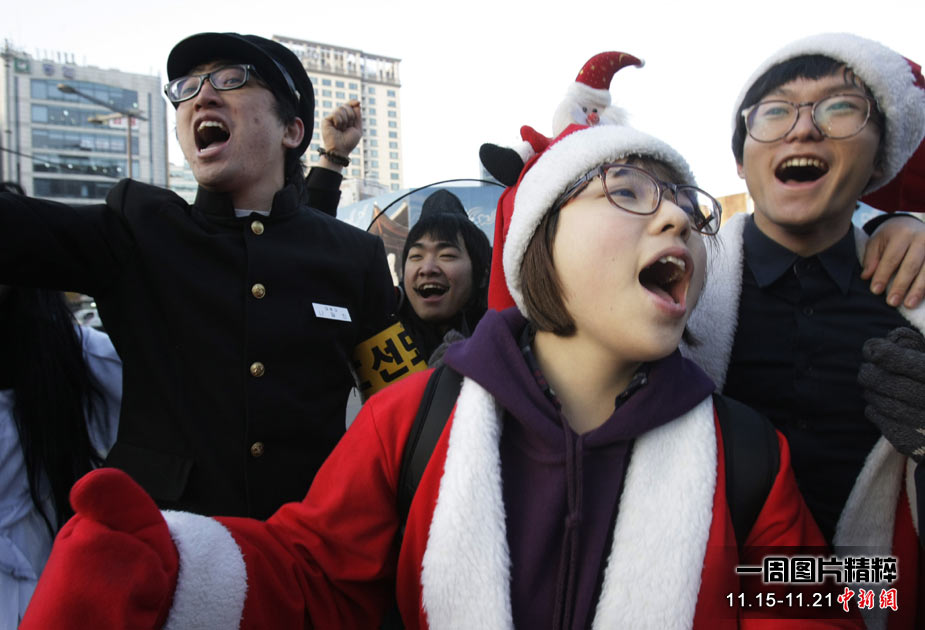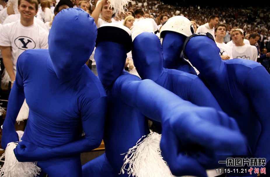 11月15日(周一),日本九州相撲大賽的第二天。圖為來自蒙古的相撲冠軍白鵬翔Hakuho,(圖中)被推出賽臺的一瞬間。