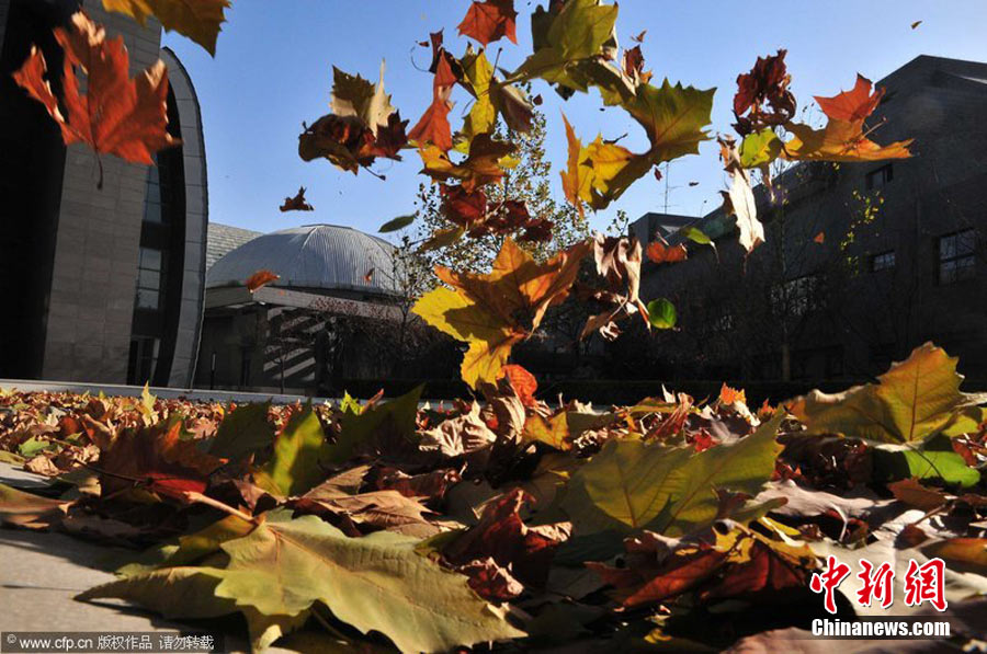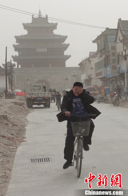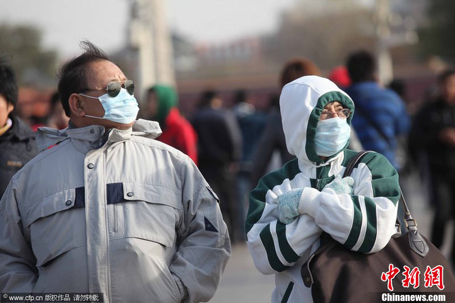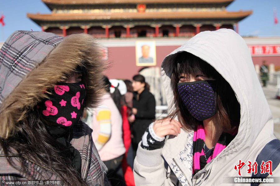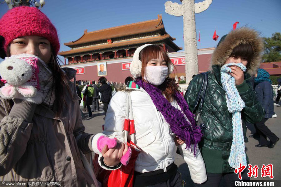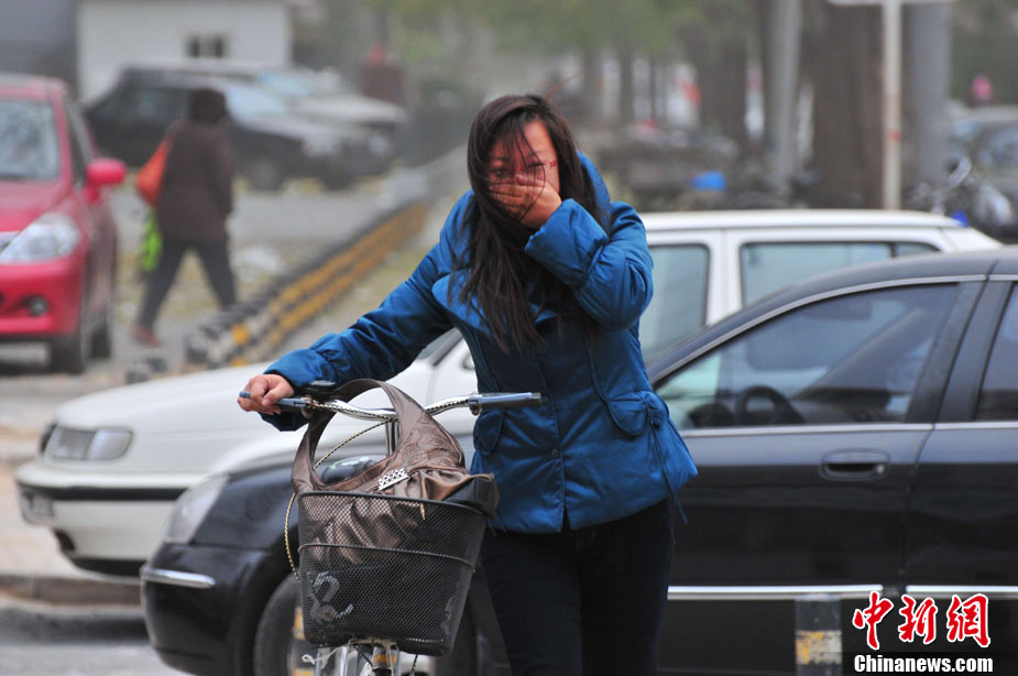 2010年11月21日,北京出現(xiàn)大風(fēng)天氣,風(fēng)力達(dá)到5-6級(jí),風(fēng)中伴有沙塵,給行人帶來(lái)諸多不便。陳曉根 攝 圖片來(lái)源:CFP視覺(jué)中國(guó)
