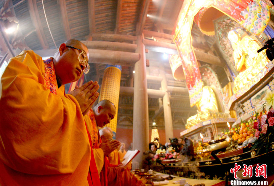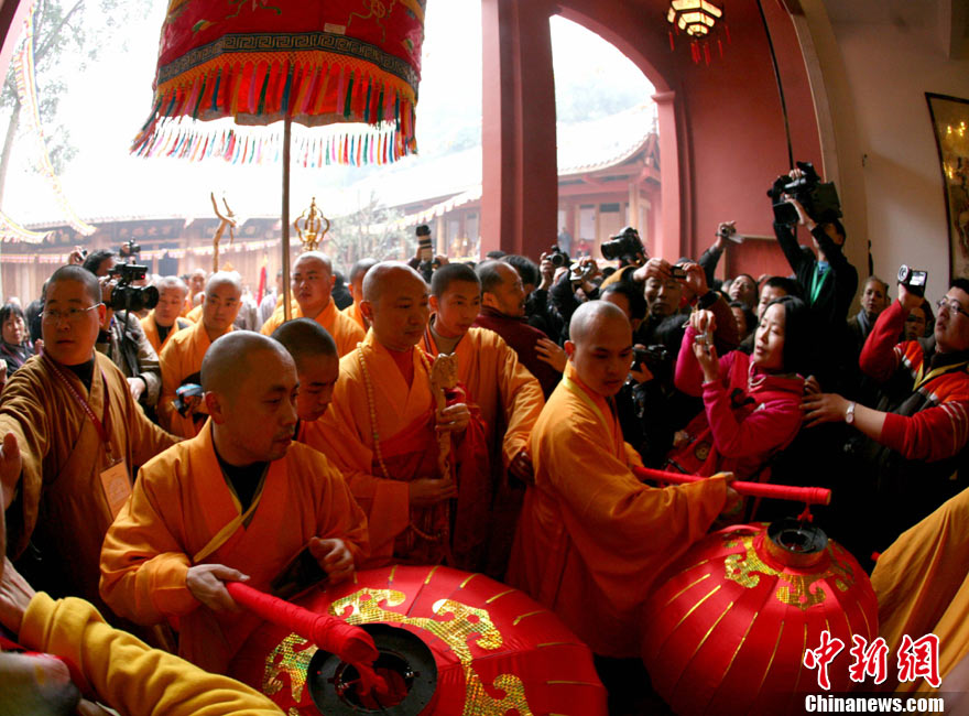 11月21日,“樂山凌云寺重光暨照觀法師榮膺凌云寺方丈、烏尤寺晉院升座法會”在四川樂山凌云寺、烏尤寺舉行。這標(biāo)志著有著1400年的千年名寺凌云寺經(jīng)歷“5·12” 汶川大地震的劫難后再現(xiàn)昔日光彩。圖為樂山凌云寺重光法會現(xiàn)場。中新社發(fā) 劉忠俊 攝