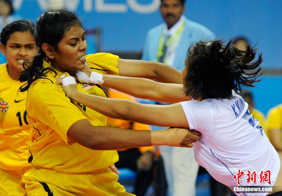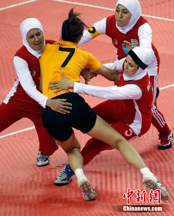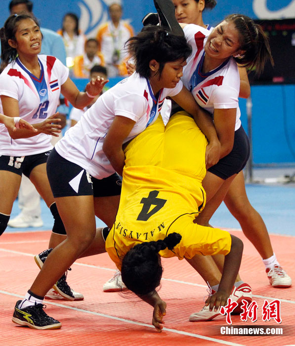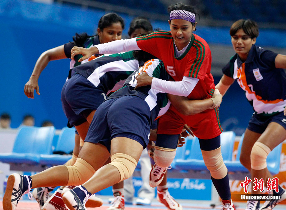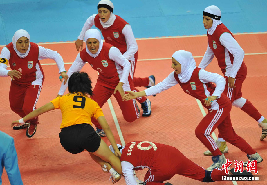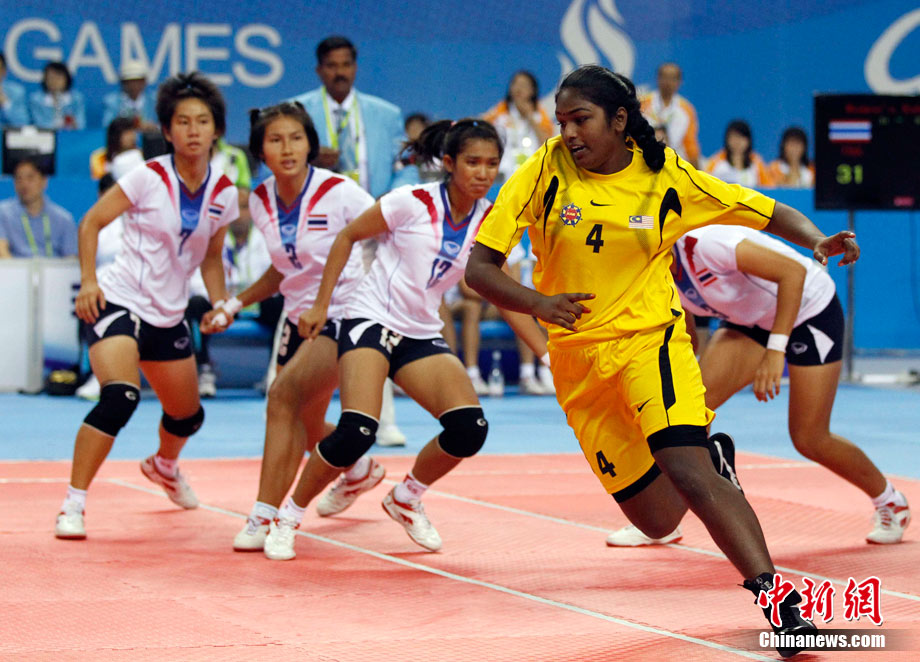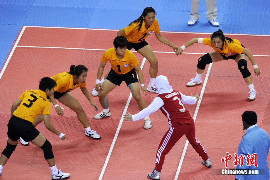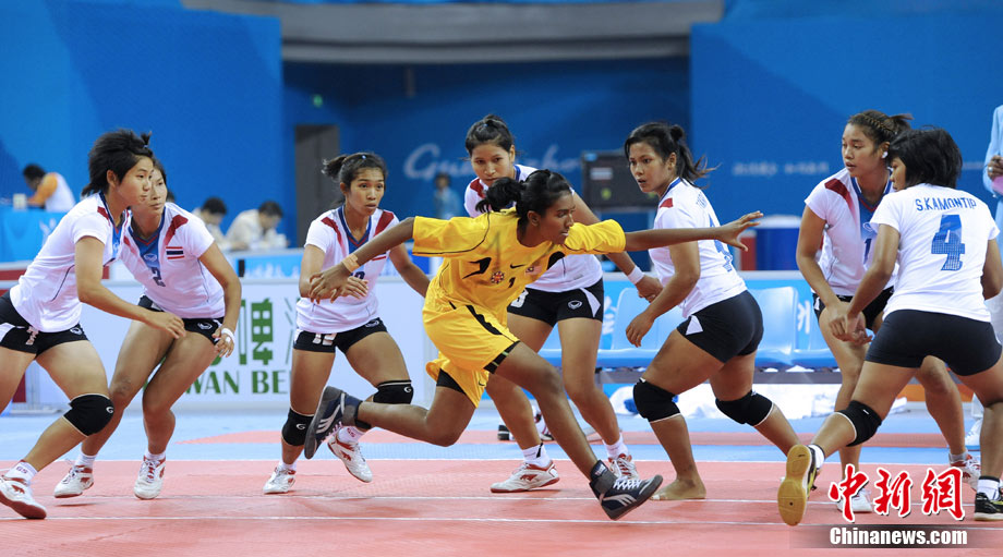 下圖:2010廣州亞運會女子卡巴迪比賽現場。