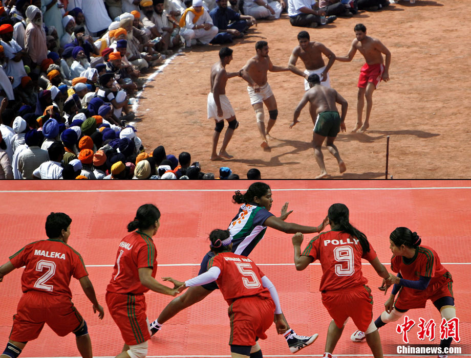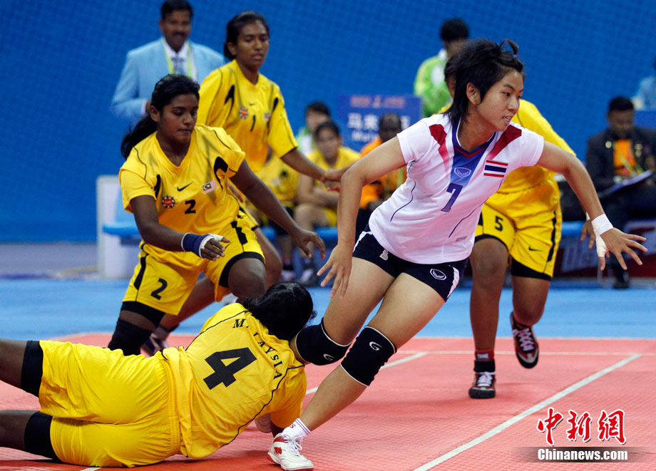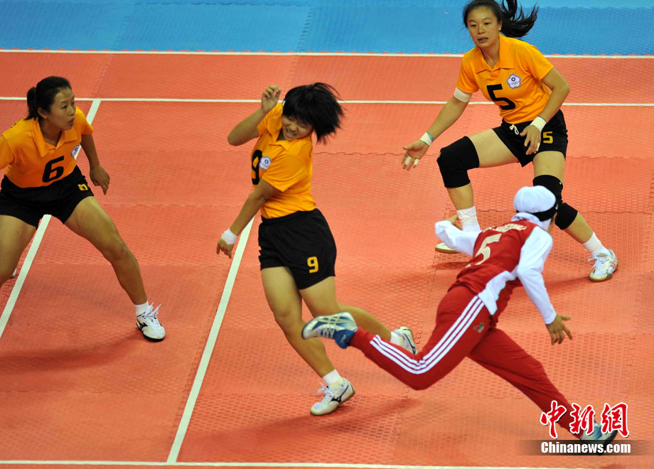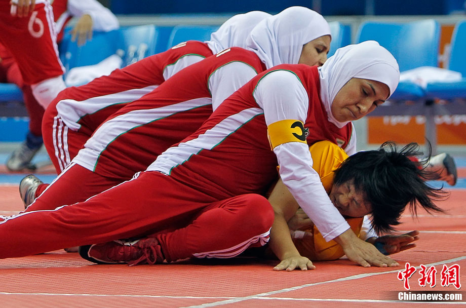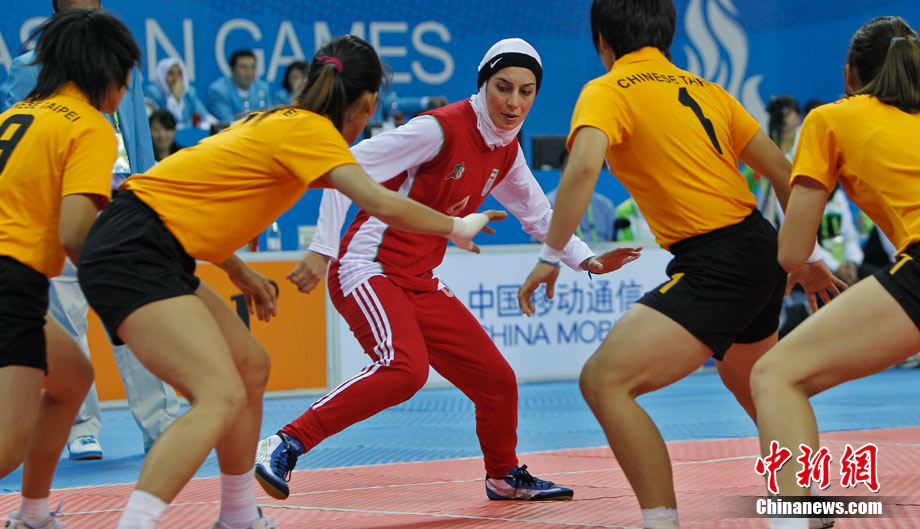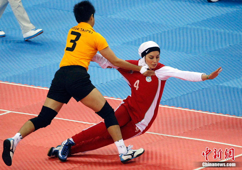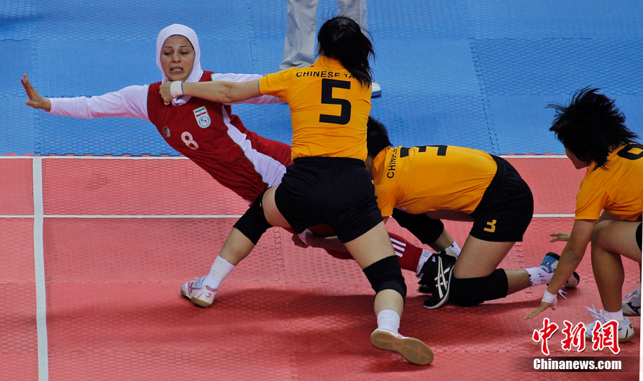 下圖:2010廣州亞運會女子卡巴迪比賽現場。