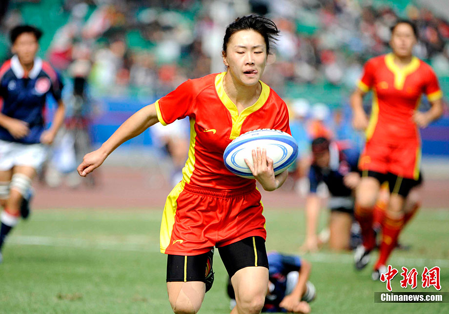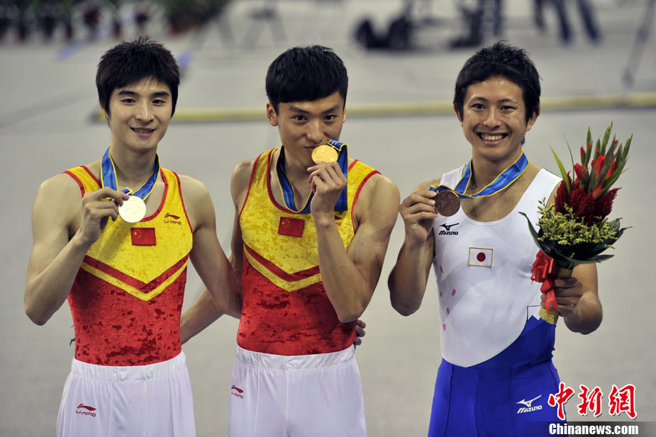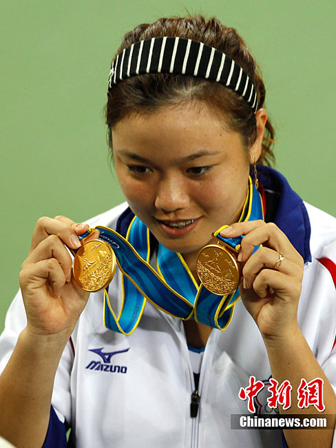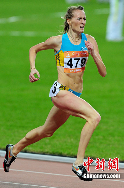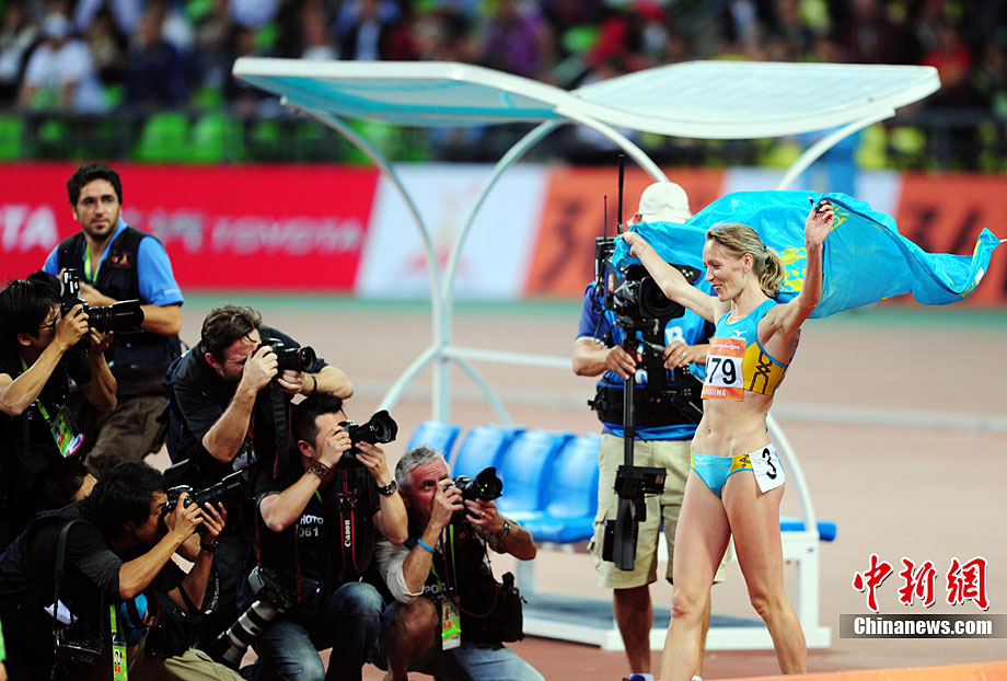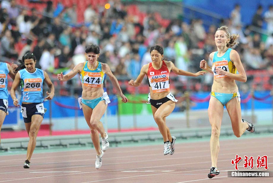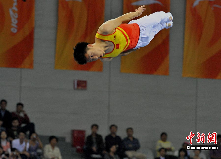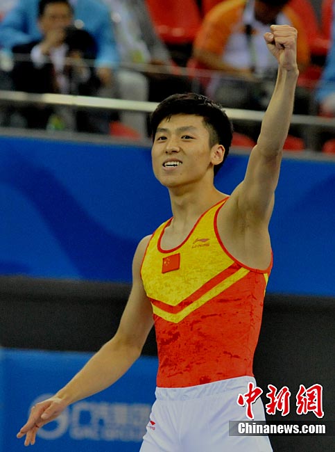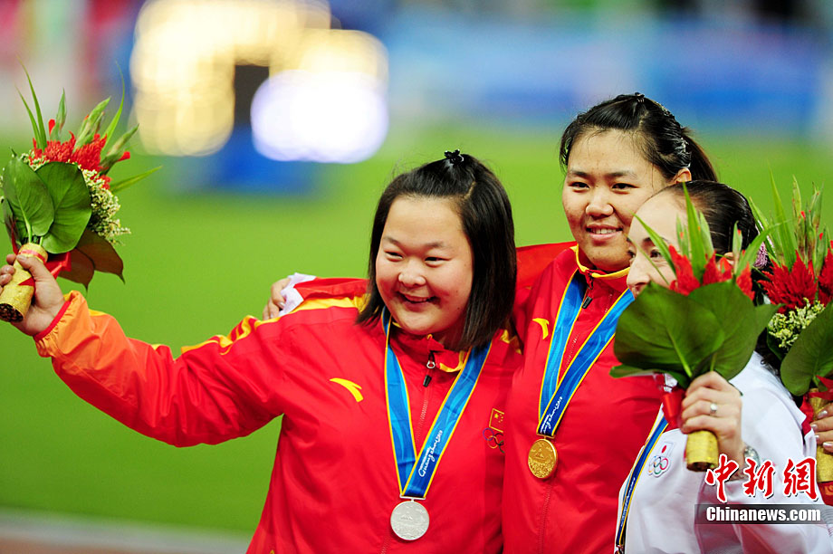 22日晚,廣州亞運會田徑男子100米決賽中,中國選手勞義奪得金牌。中新社記者 柯小軍 攝