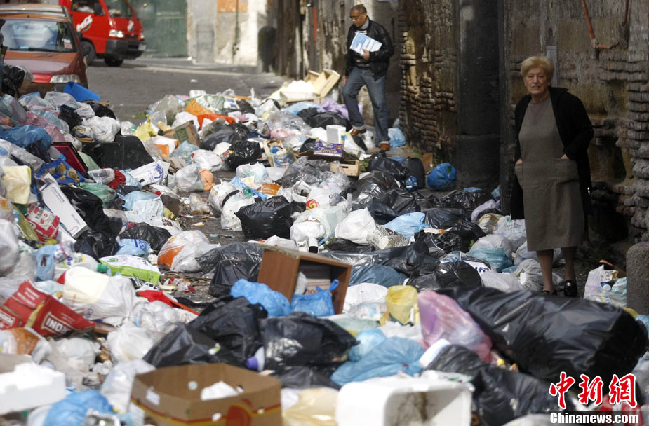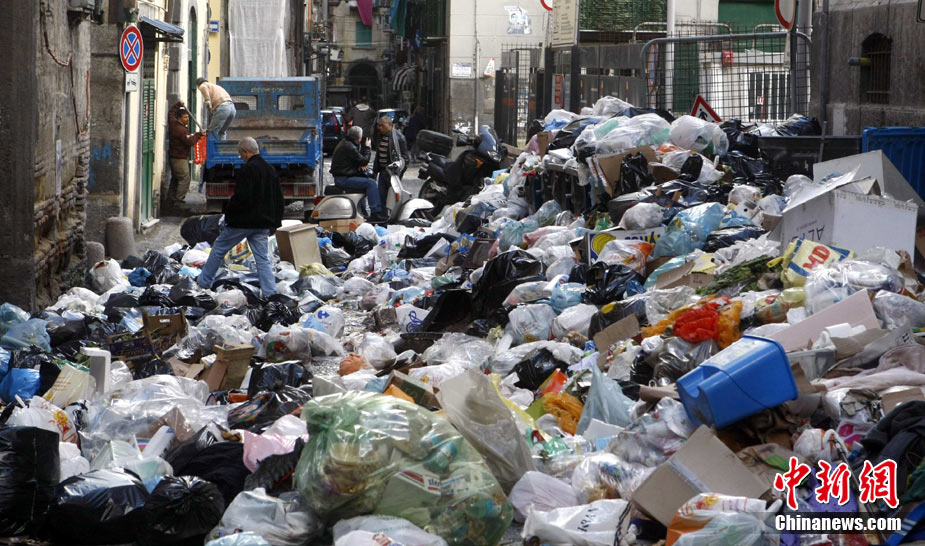 11月22日,意大利“垃圾危機”扔在持續,那不勒斯街道垃圾成患。意大利政府打算在位于那不勒斯東南大約20公里的泰爾齊尼奧鎮新建一座垃圾處理場,以解決那里的垃圾問題。
