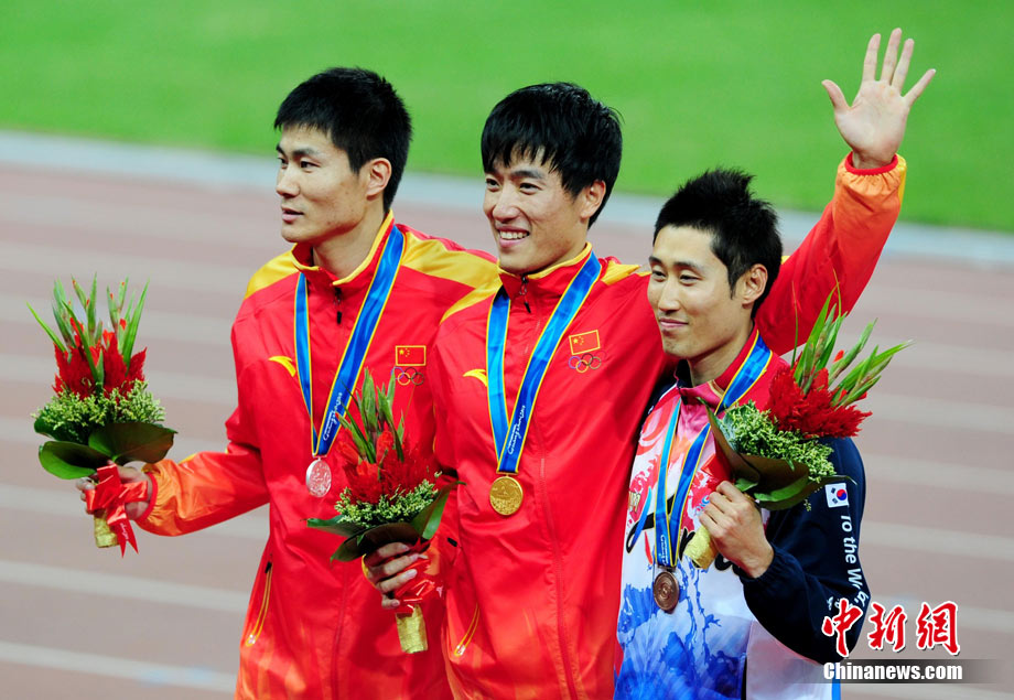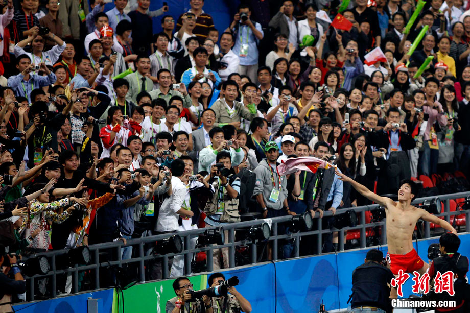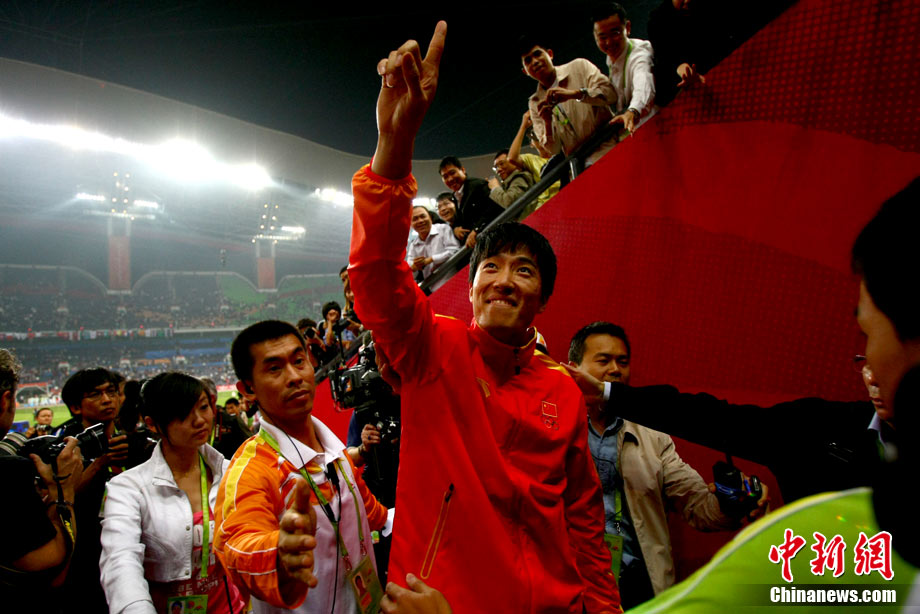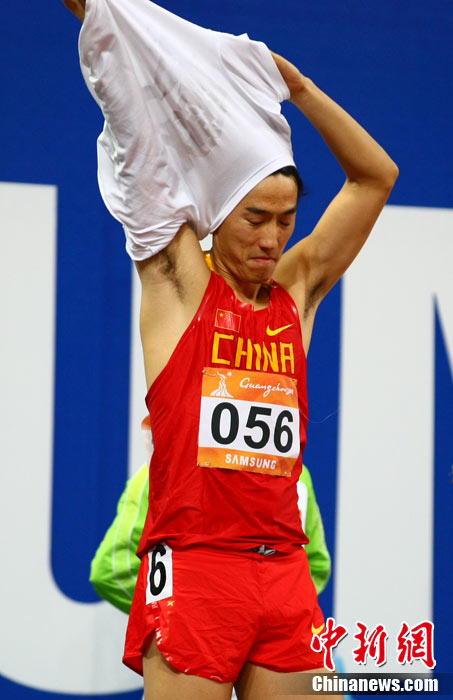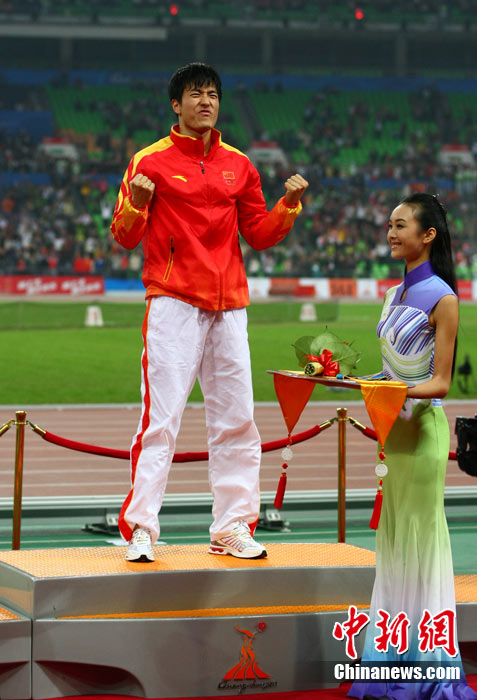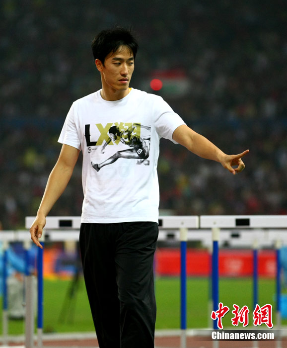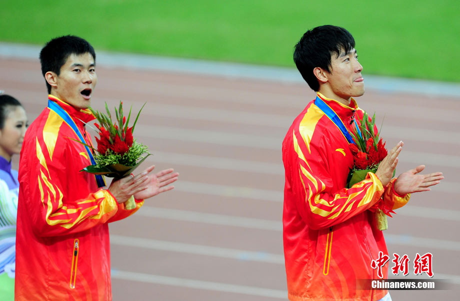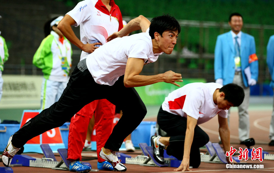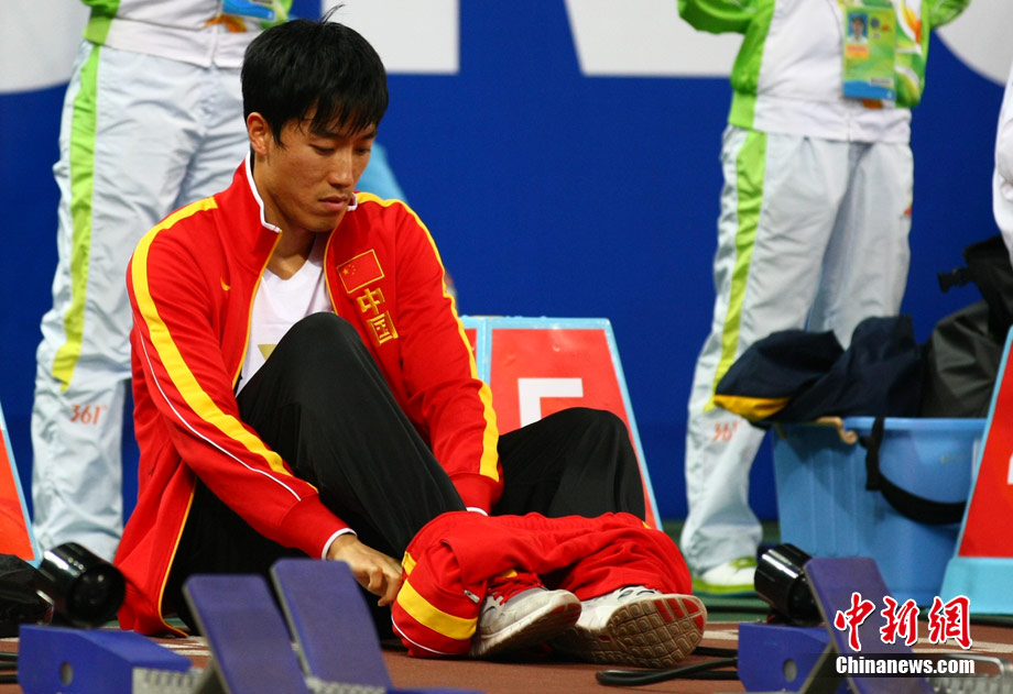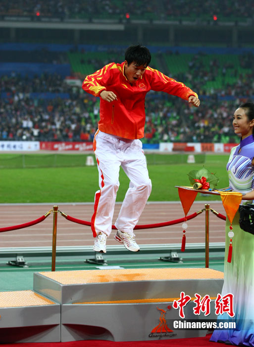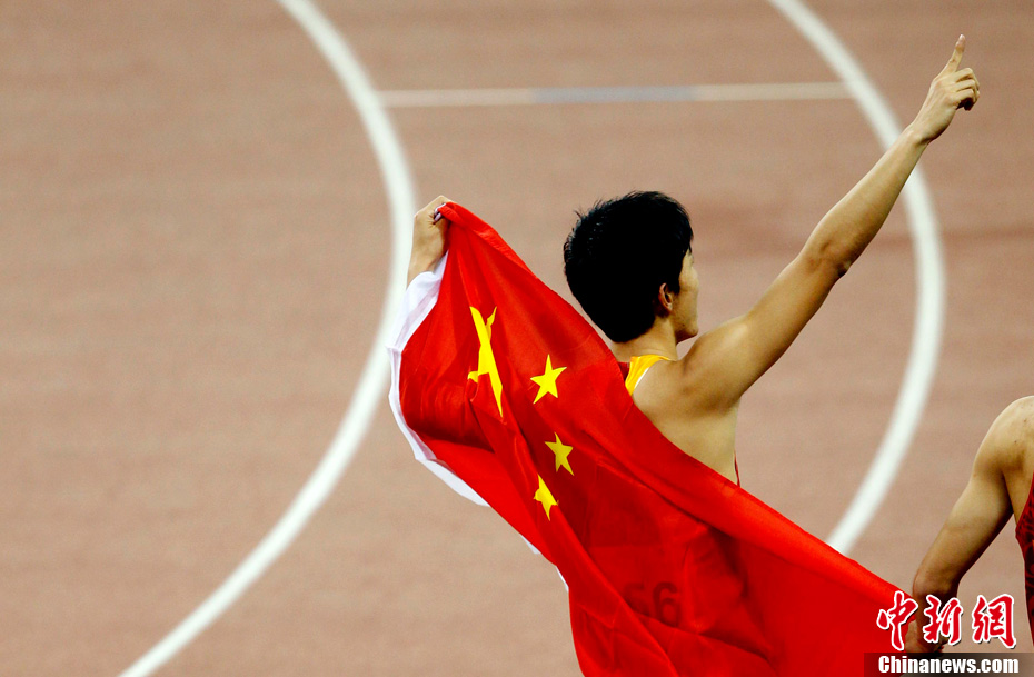11月24日,廣州亞運會男子110米欄決賽,劉翔以13秒09的成績奪得金牌,這一成績打破了亞運會紀錄。劉翔以一場酣暢淋漓的勝利宣告了自己的回歸。中新社記者 王東明 攝