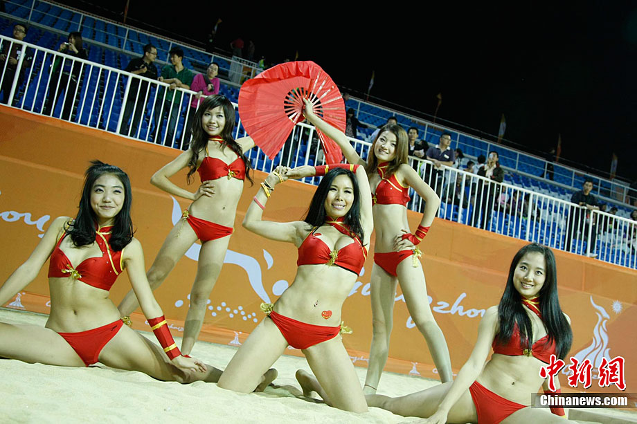 11月24日,廣州亞運會男子沙灘排球奪冠戰落下戰幕,沙灘寶貝們的難忘營地和精彩表演也就此謝幕。中新社記者 張茵 攝