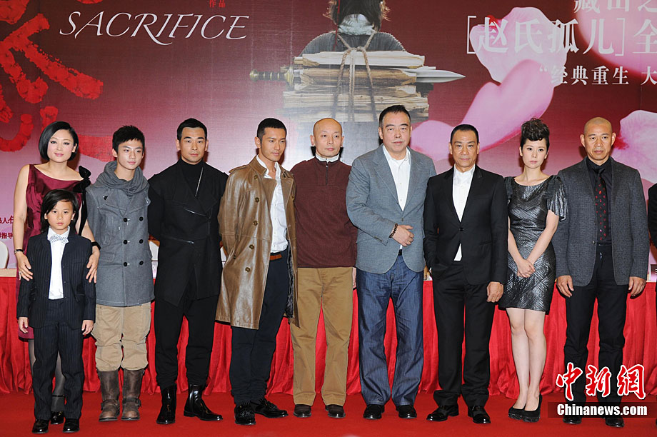 11月26日,陳凱歌最新力作《趙氏孤兒》在北京舉行了全球首映禮。陳凱歌、葛優、王學圻、黃曉明、張豐毅、趙文卓、陳紅、海清等眾主創全陣容豪華亮相。影片將于12月4日公映。隨著《趙氏孤兒》打響賀歲檔第一槍,今年賀歲片大戰的序幕即將拉開。中新社記者 李學仕 攝