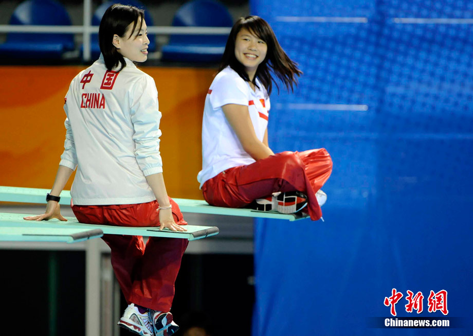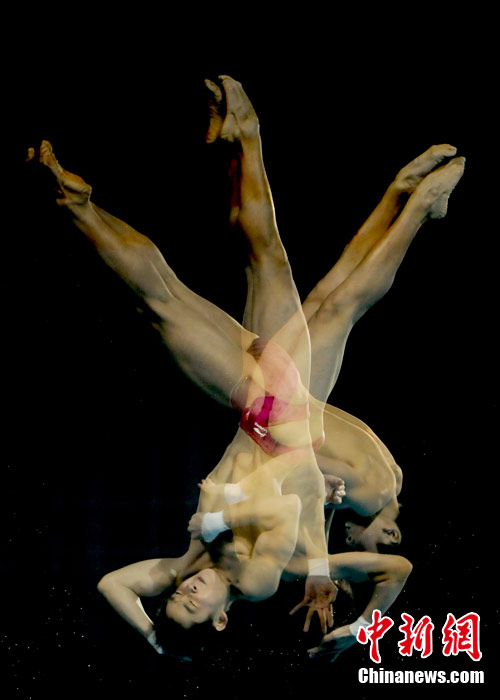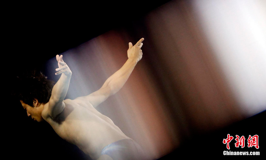 11月26日,廣州亞運會,男子10米跳臺,運動員飛身而下。中新社記者 杜洋 攝