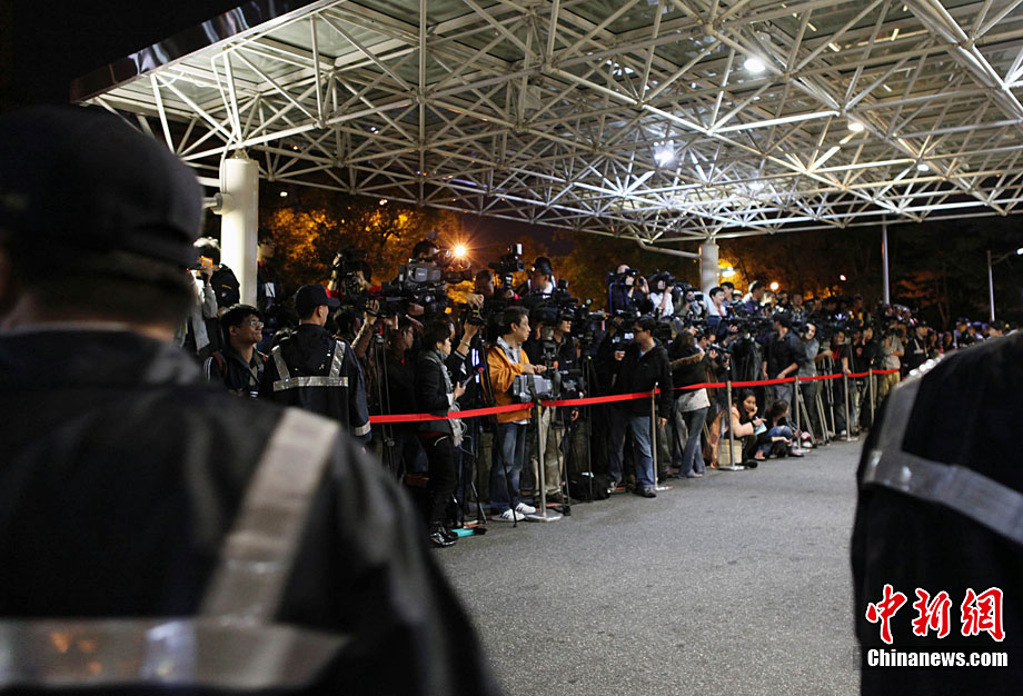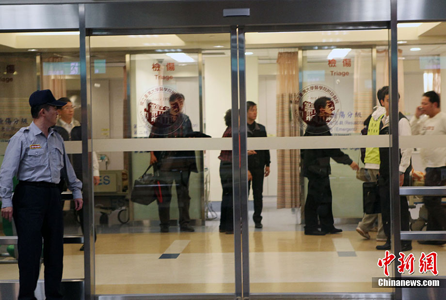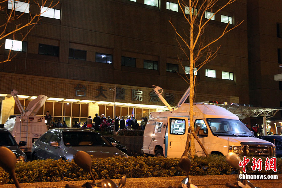 中國國民黨榮譽主席連戰之子連勝文26日晚在新北市永和參加造勢晚會時,遭到近距離槍擊重傷,經送往永和耕莘醫院急救,再轉送臺灣大學醫學院附設醫院急救。圖為在臺大醫院外,幾十家媒體記者聚集在此等候消息。中新社記者 關向東 攝