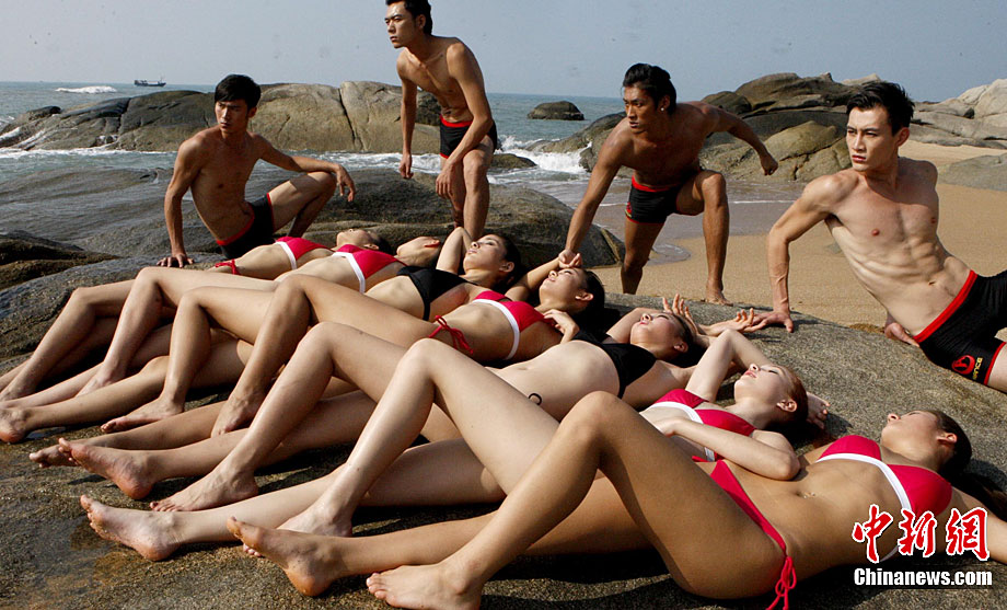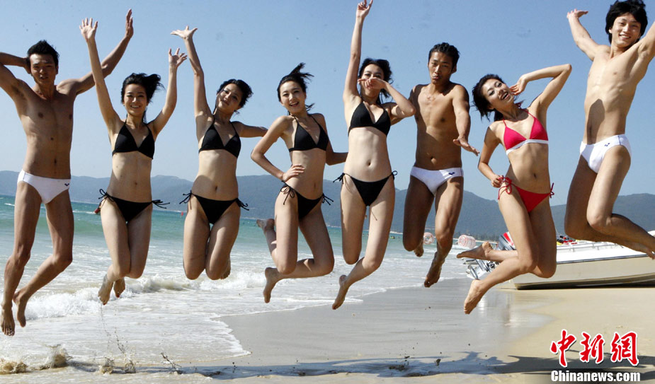 11月28日,正在海南三亞參加“第18屆新絲路中國模特大賽總決賽”的50名男、女模特選手來到三亞海邊拍攝外景,本屆新絲路中國模特大賽攜手眾多時尚品牌和媒體再臨三亞,除了以“三亞傳奇”為主題的總決賽晚會外,還包括中國服裝榮譽品牌聯展、三亞美麗論壇等一系列主題活動,旨在打造年度最具影響力和號召力的頂級時尚賽事。圖為三亞沙灘新絲路模特走秀。中新社記者 錢興強 攝