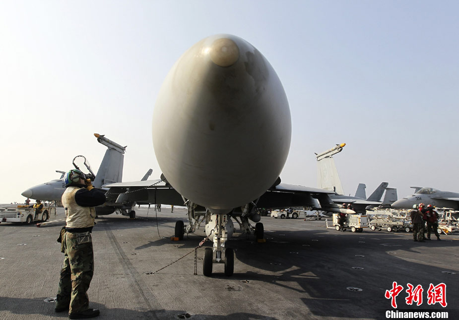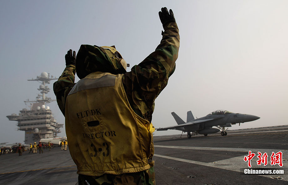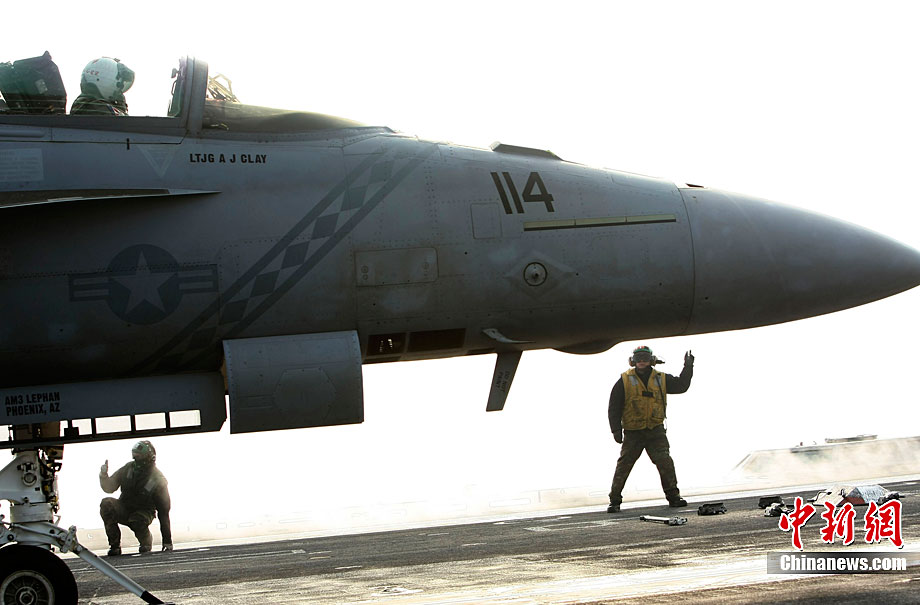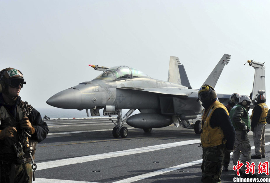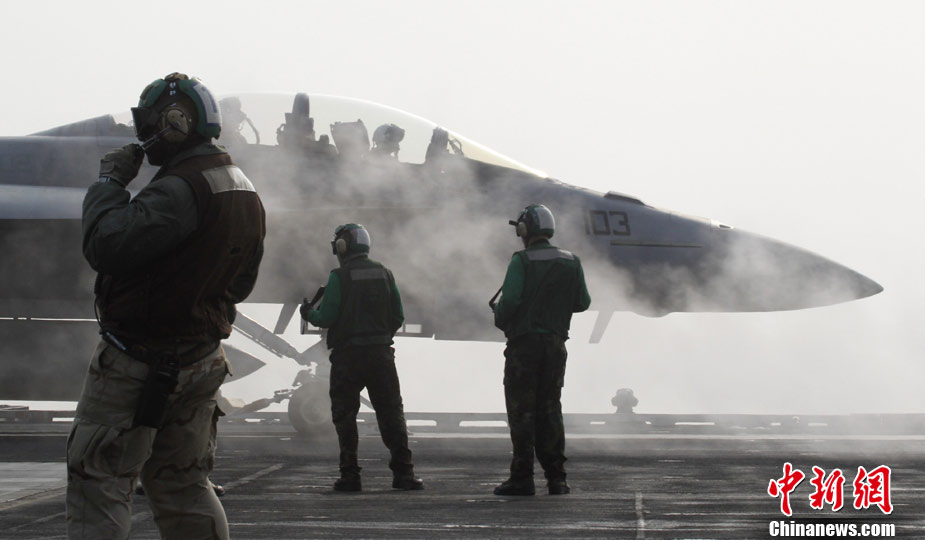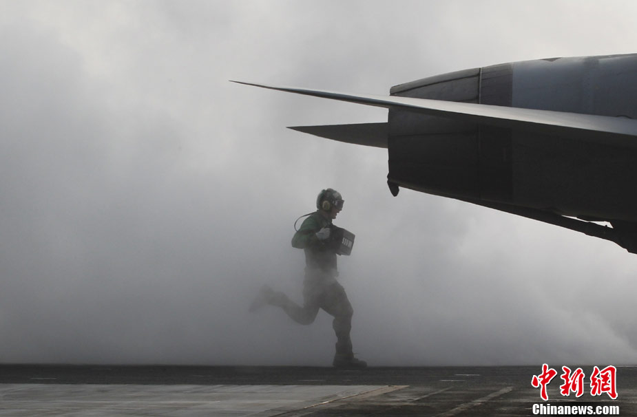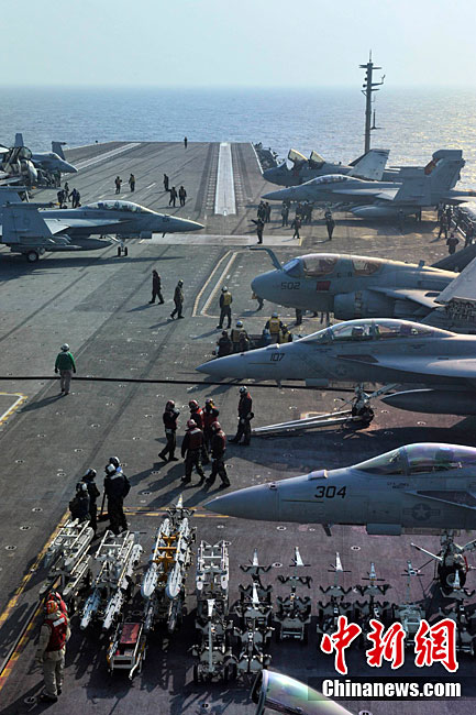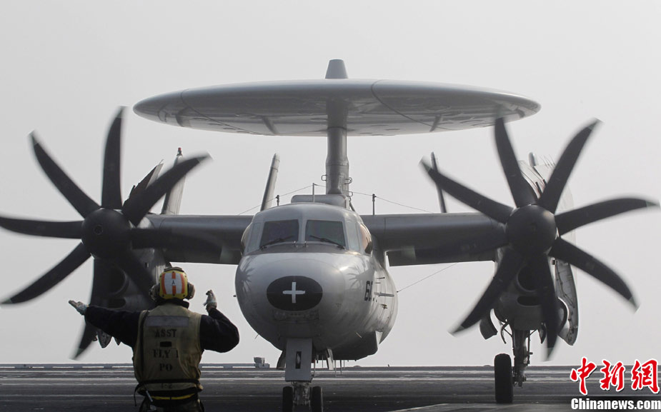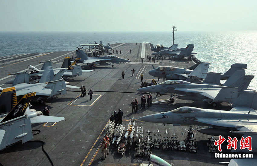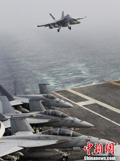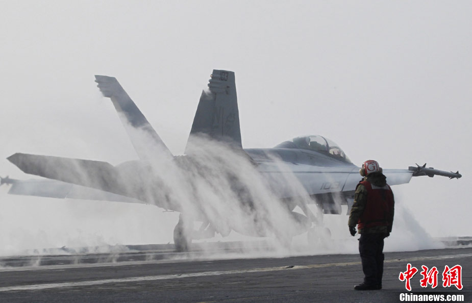 11月28日,韓美聯合軍事演習在黃海海域舉行。美軍派出“喬治·華盛頓”號航母、9600噸級巡洋艦及9750噸級驅逐艦參加演習。韓軍也投入7600噸級“世宗大王”艦、兩艘4500噸級驅逐艦以及巡邏艦、護航艦、戰斗支援艦和反潛飛機等參加演習。圖為11月17日,美國“喬治·華頓頓”號航母在日本沖繩附近演習。