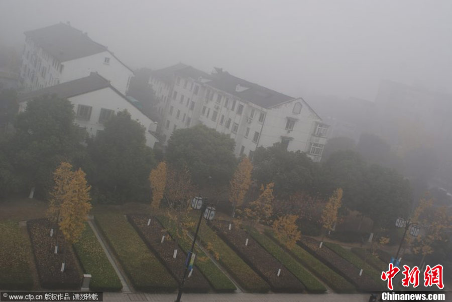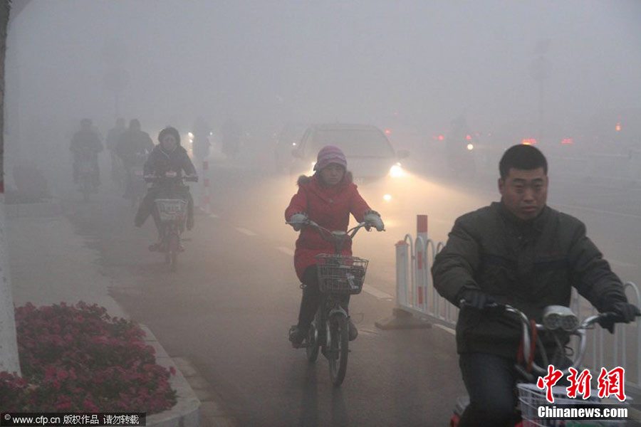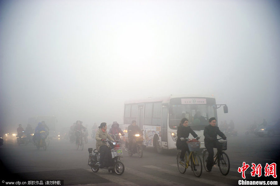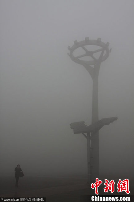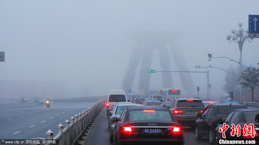 11月30日夜間到12月1日上午,遼寧、華北平原、陜西南部、黃淮大部、江淮、江漢、江南北部、四川東部、云南西南部等地有輕霧,其中,河北中南部、京津地區、山東北部、蘇皖南部、湖北東部、湖南西北部、四川東北部、云南西南部等地的部分地區有能見度不足1000米的霧,局部地區能見度不足200米。圖為12月1日,河北邢臺遭遇大霧天氣。陳克家 攝 圖片來源:CFP視覺中國