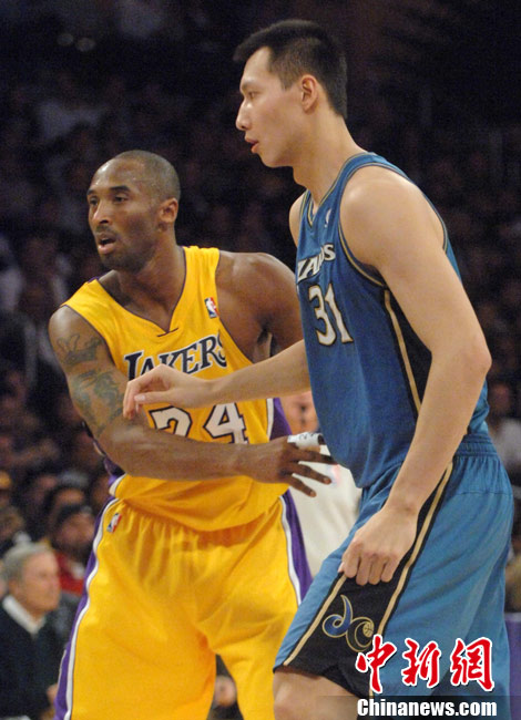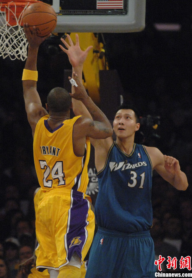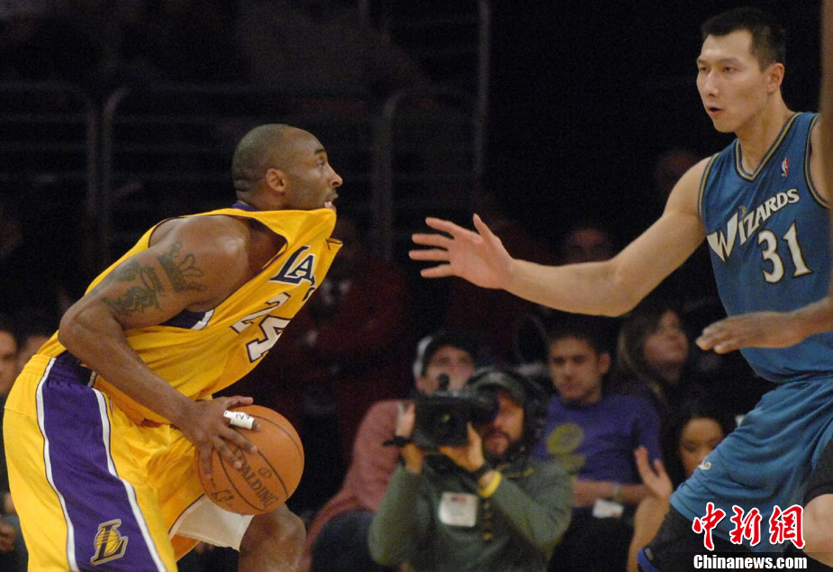 當地時間12月7日晚,華盛頓奇才隊在洛杉磯客場挑戰洛杉磯湖人隊,由于奇才主力前鋒安德雷賽前左臀撞傷,中國球員易建聯先發上陣,這是易建聯本賽季首次先發。上半場奇才以56比69落后,易建聯拿下5分。中新社發 張煒 攝