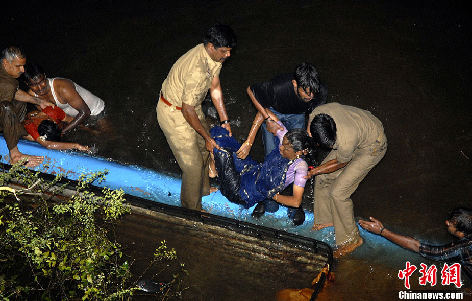 當?shù)毓賳T稱,這輛巴士上的乘客當時正在去參加婚禮的路上。司機在邁索爾市郊的一座橋上失去了對車輛的控制,墜入水庫。