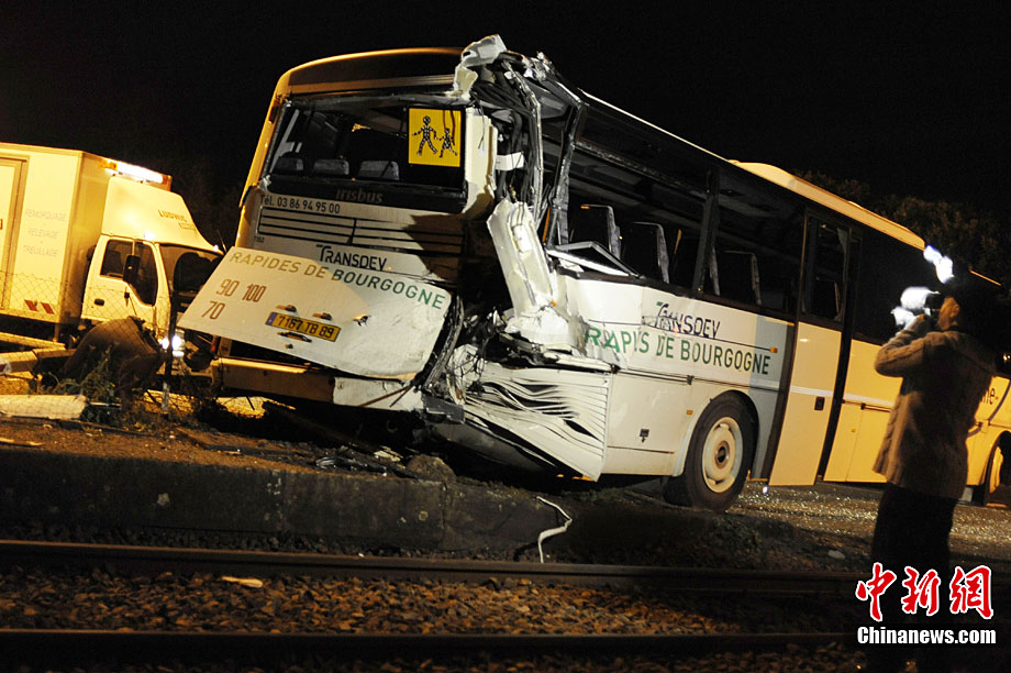 當地時間12月14日傍晚,法國中部約訥省一輛載有30余名中學生的校車與火車發生相撞事故,校車內17名中學生受傷。事發在一處沒有欄桿的平交道口。據當地警方初步調查結果顯示,事發前,校車內曾發生激烈爭吵,校車司機可能因而分神,沒留意駛來的列車。目前,校車司機已被警方拘留。