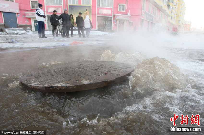 近日,黑龍江省哈爾濱市供熱管線接連爆裂。從12月14日至今,道里區、道外區約12萬戶居民供暖中斷。華能公司經理趙世雷解釋說,造成這幾次大的停熱事故的主要原因是補償器破裂。18日夜間開始,哈爾濱市降下大雪,最低氣溫接近零下30攝氏度。小剛 攝 圖片來源:CFP視覺中國