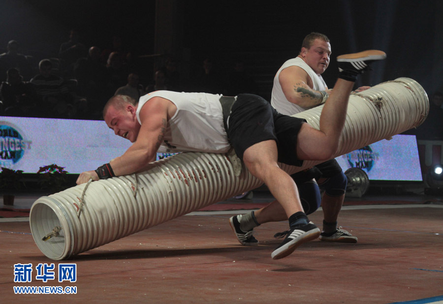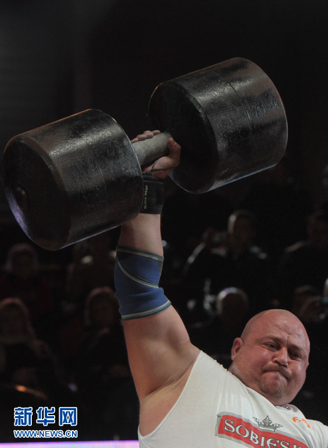 12月19日,參賽大力士在比賽中。當(dāng)日,烏克蘭首都基輔舉辦2010世界大力士比賽。該項(xiàng)比賽在體現(xiàn)選手力量的同時(shí),也融入了各國(guó)的民族風(fēng)情,很受當(dāng)?shù)赜^眾喜愛(ài)。斯塔拉斯堅(jiān)科 攝 (圖片來(lái)源:新華網(wǎng))