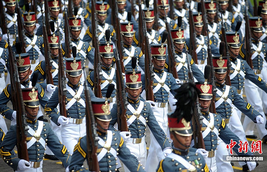 當(dāng)?shù)貢r間12月21日,菲律賓建軍75周年閱兵式在菲律賓奎松城舉行。菲律賓總統(tǒng)阿基諾三世視察了閱兵式。
