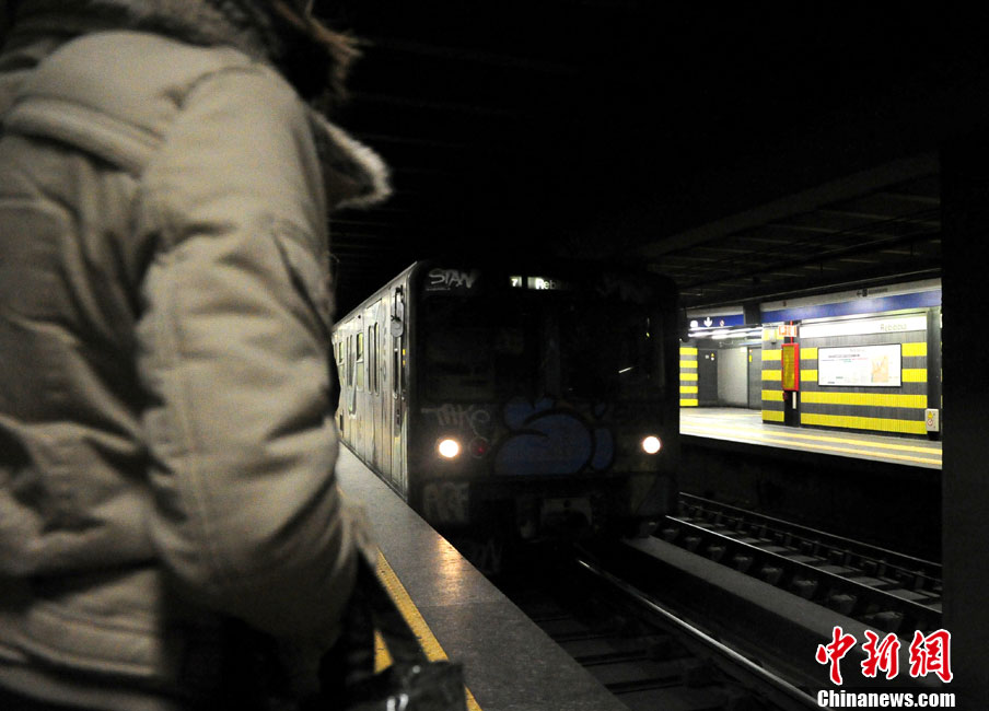 12月21日,意大利羅馬,運輸員工當天在一節地鐵空車廂里發現了一個裝有將要爆炸的炸彈包裹,隨后被安全人員拆除。圖為21日,在意大利羅馬,一輛地鐵即將到站。