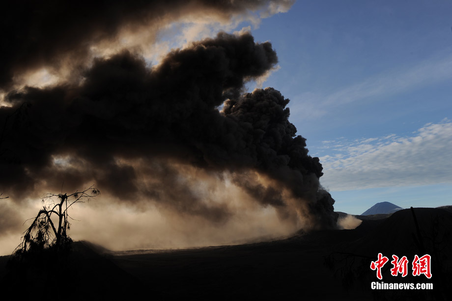 12月24日,印尼婆羅摩火山仍繼續噴發,濃煙高達1000米。