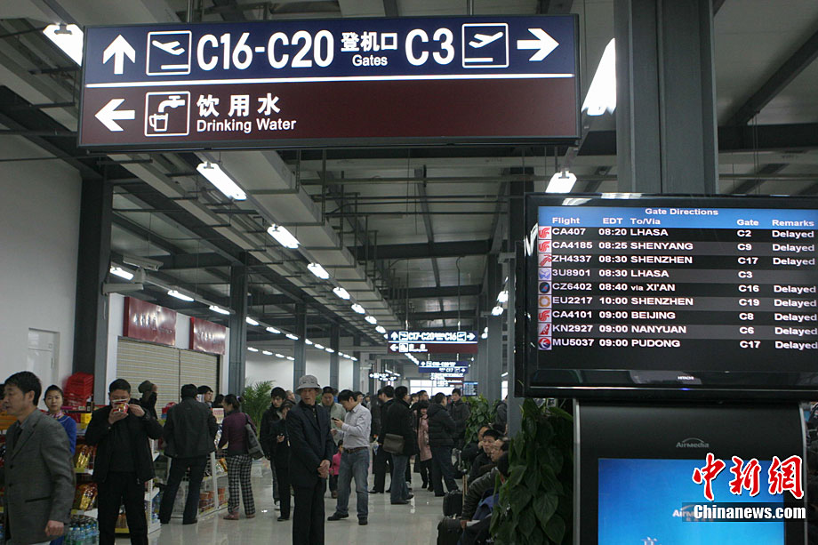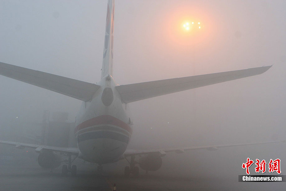 12月28日清晨3時(shí)左右,成都雙流國(guó)際機(jī)場(chǎng)遭遇大霧天氣襲擊。受此影響,機(jī)場(chǎng)被迫關(guān)閉長(zhǎng)達(dá)7個(gè)多小時(shí)。截至11時(shí),大霧造成110個(gè)進(jìn)出港航班延誤,近萬名出行旅客被困機(jī)場(chǎng)。中新社發(fā) 呂俊明 攝