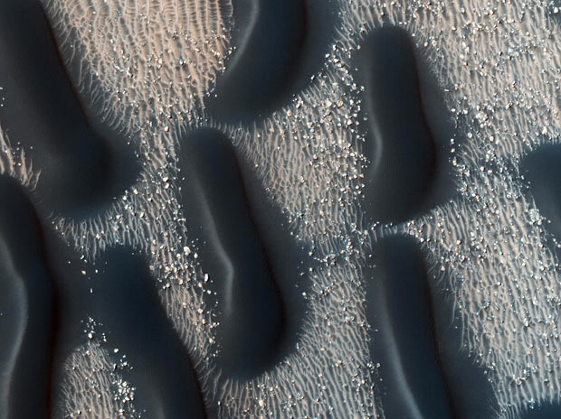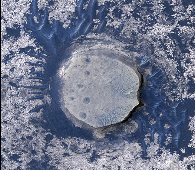 美國宇航局“火星偵察軌道器”在火星“阿拉比亞陸地平原”地區,拍攝到的奇怪隕石彈坑。自從2006年以來,“火星偵察軌道器”已經發回100兆兆位的信息,相當于MP3中存了300萬首歌。