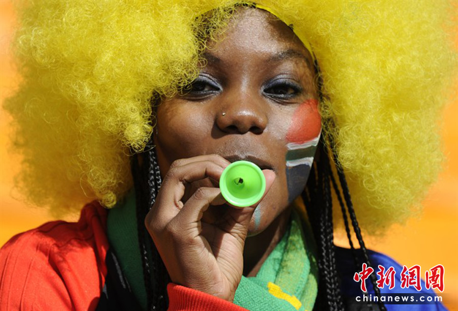北京時間11日晚8時10分,南非世界杯足球賽開幕儀式在約翰內斯堡的足球城體育場拉開帷幕。開幕儀式前,南非共和國的空軍進行了飛行表演。五架飛機在世界杯賽場滑翔而過。