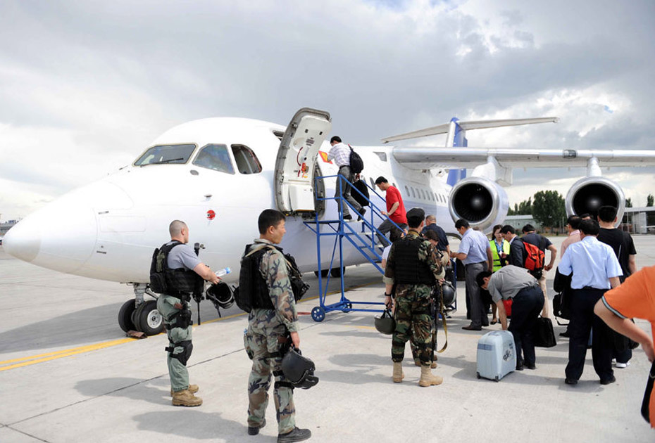 6月14日,在吉爾吉斯斯坦首都比什凱克,中方工作組成員在比什凱克國際機場登機。當天,中方向奧什派遣的工作組已抵達奧什并展開工作。目前,奧什有大批的華僑華人已做好撤離準備。當地的南方華商協會根據中國駐吉使館安排,正在進行回國人員登記和身份核實等工作。圖片來源:新華網