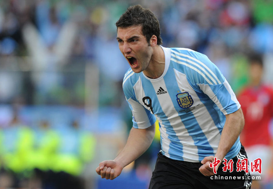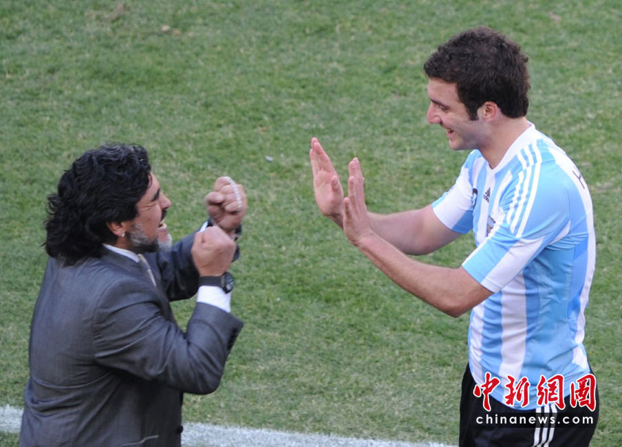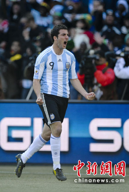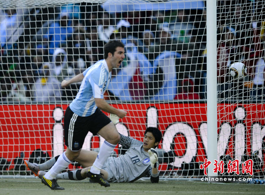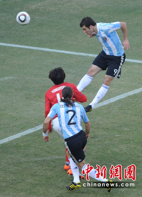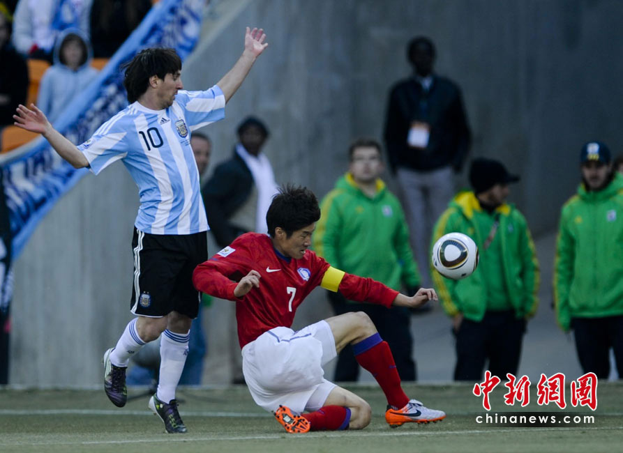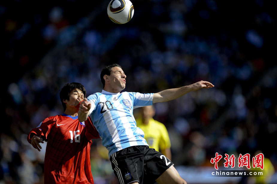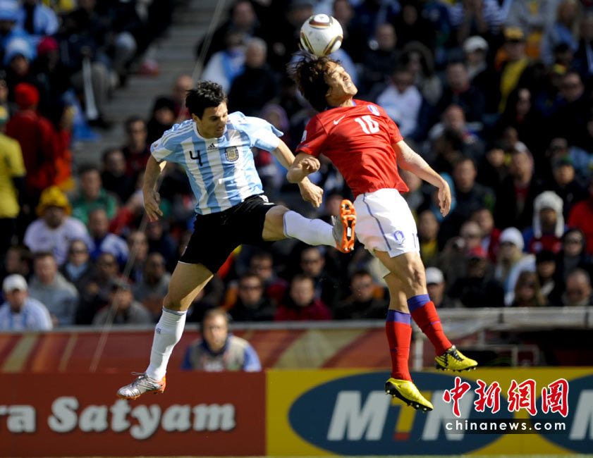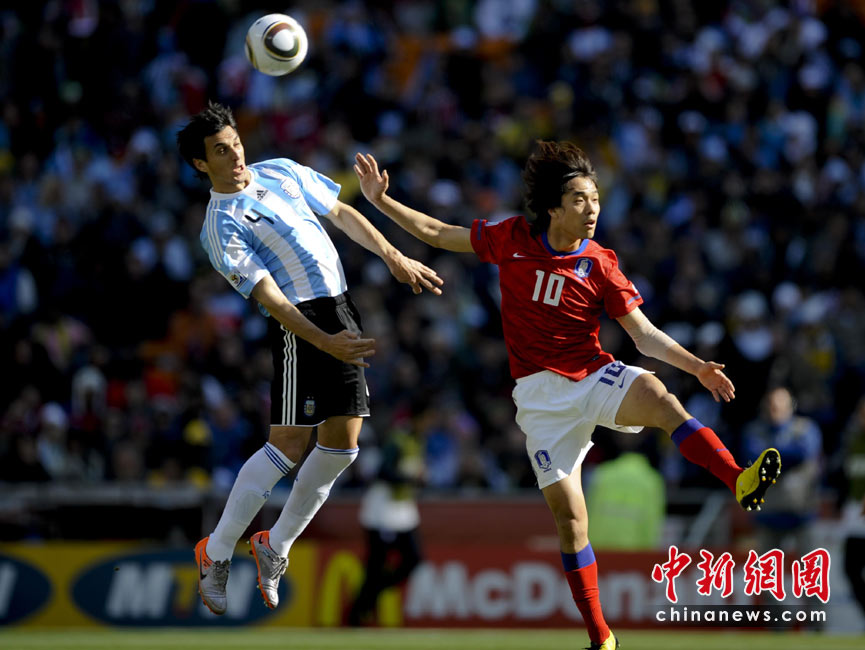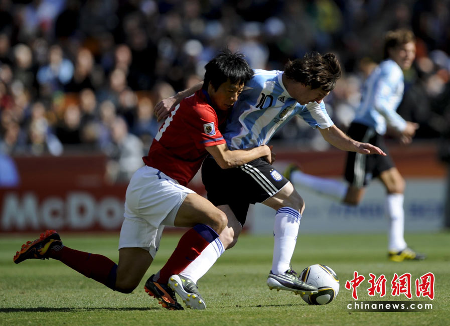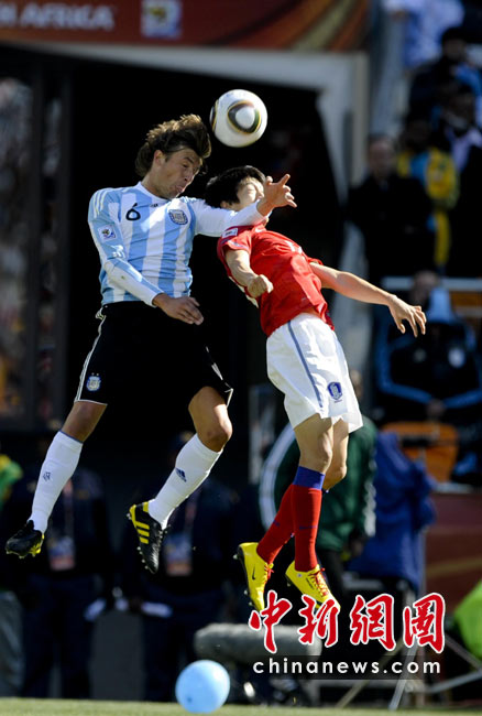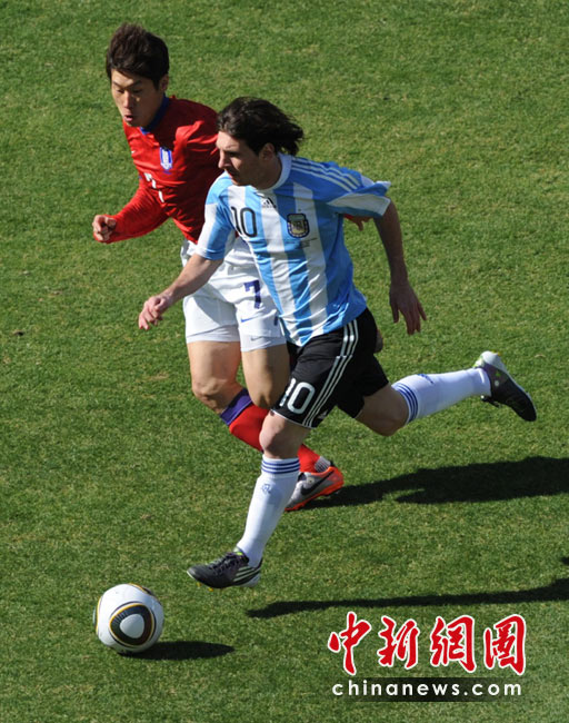 北京時間6月17日19點30分,2010年南非世界杯B組第二輪的首場比賽打響,由兩屆世界杯冠軍得主阿根廷隊迎戰亞洲“太極虎”韓國隊。中新社記者 廖攀 攝