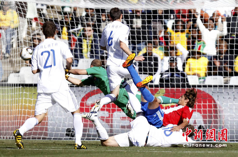 6月20日,南非世界杯F組第二輪巴拉圭同斯洛伐克隊的遭遇戰,巴拉圭隊憑借上下半場各一粒入球,2比0力克對手,兩戰一勝一平占據了小組出線的有利位置。