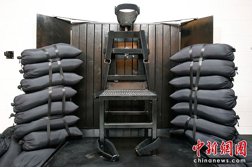 6月18日,美國猶他州臭名昭著的“殺人魔”魯尼·李·加德納被執行槍決,他是14年來美國第一名被槍決的死刑犯,此時距離他被判處死刑已經過去25年。圖片為加德納被槍決的行刑室。