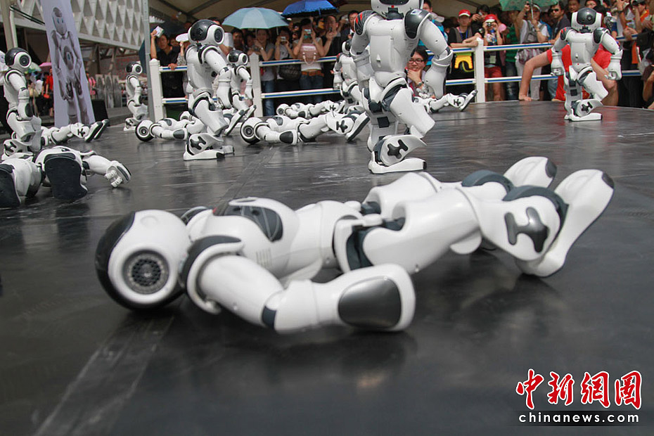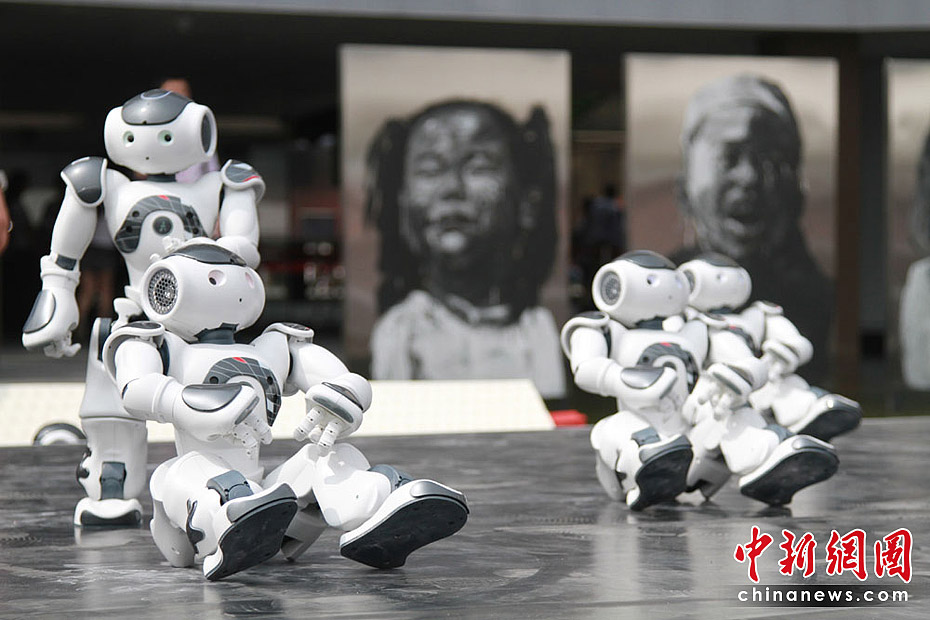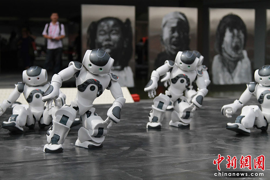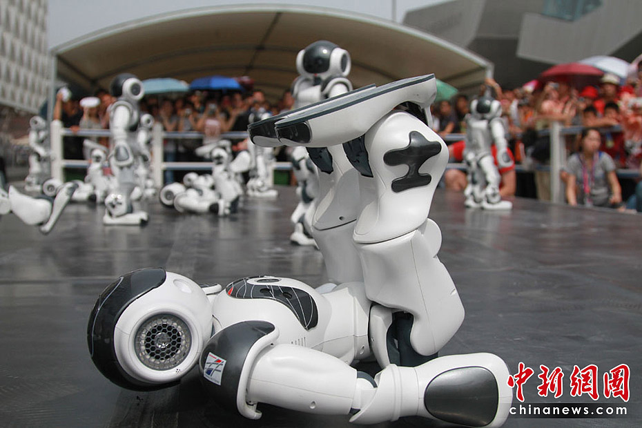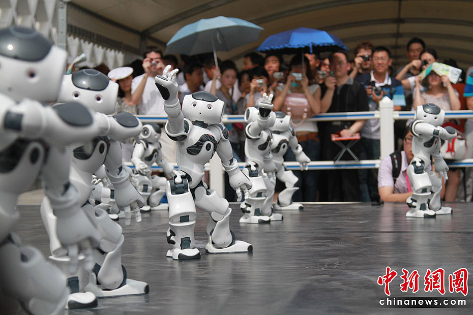 6月21日,上海世博會法國館展示的機器人首次在展館外入口處表演“舞蹈”。當天是世博法國國家館日,館方還舉行系列了慶典活動。中新社記者 殷春永 攝