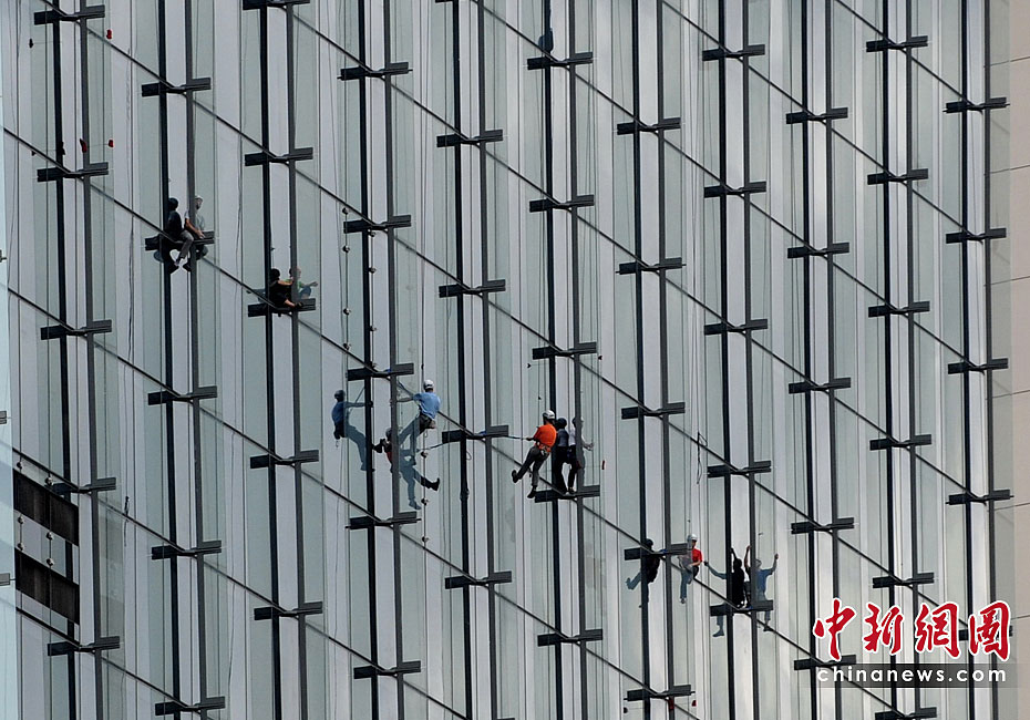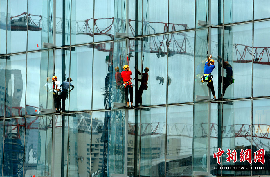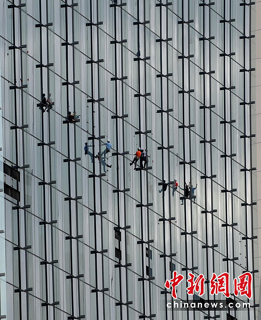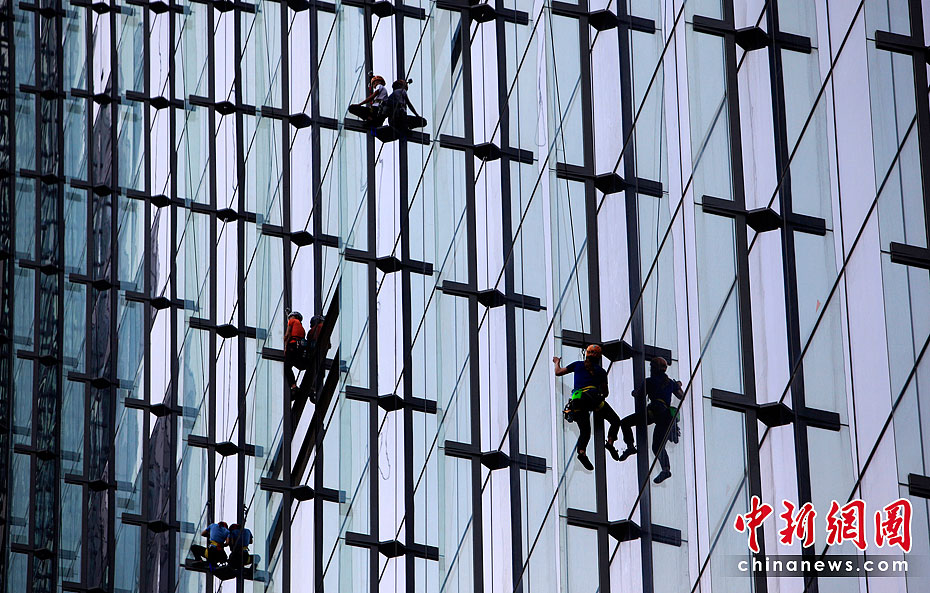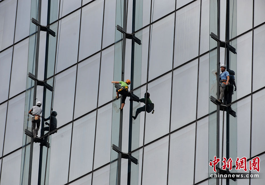 當(dāng)?shù)貢r間6月23日,21名專業(yè)登山者參加了在新加坡舉行的首屆世界攀登高塔錦標(biāo)賽。21位專業(yè)登山者同時攀爬3座55層樓高的濱海灣金沙酒店,最先爬到樓頂者為勝。
