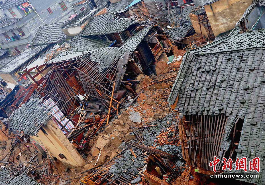 6月24日,福建建陽市童游街道新村成片倒塌的房屋,在大雨中滿目瘡痍。自6月13日以來,福建輪番遭受特大暴雨襲擊,造成了歷史罕見的自然災害。僅閩北建陽市,初步統(tǒng)計受災人口14.6萬人,3236間房屋倒塌,水稻、煙葉等農作物受災面積17.4萬畝,直接經濟損失4.658億元。中新社發(fā) 劉可耕 攝