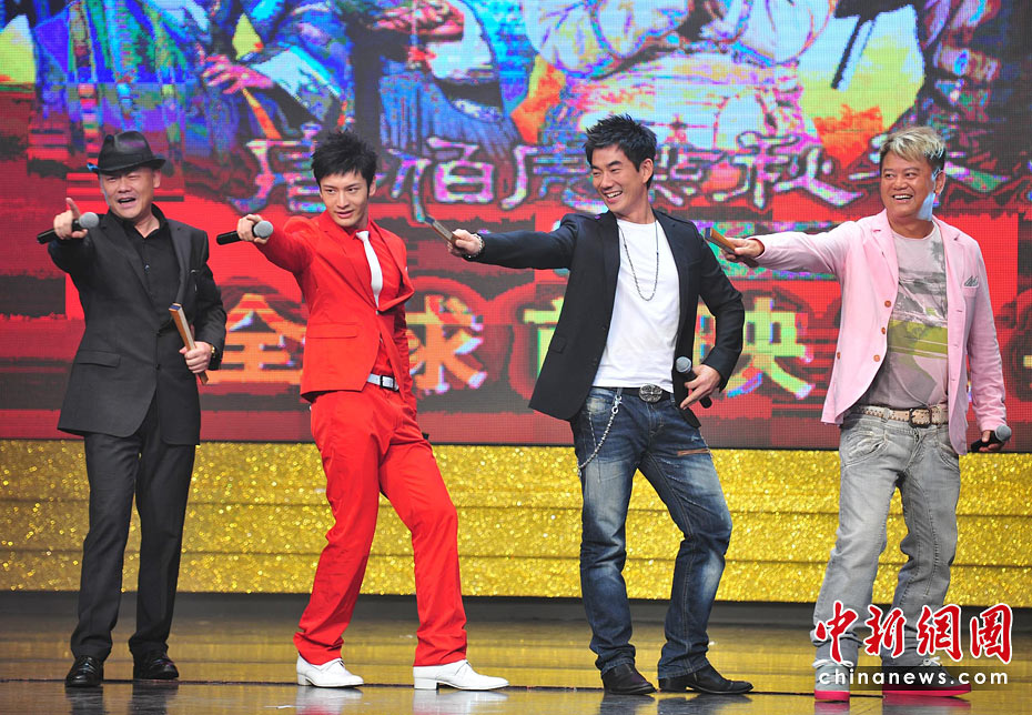 6月27日,匯集黃曉明、張靜初、周立波、任賢齊、陳百祥等兩岸三地明星大腕的古裝動作喜劇《唐伯虎點秋香2》在京首映,宣布將于7月9日上映。出品人向華勝攜眾主創悉數出席。發布會現場,四大才子與秋香張靜初紛紛誓與原版一較高下,而唐伯虎與秋香之間的“談情說愛”也成為了現場的最大亮點。中新社記者 李學仕 攝