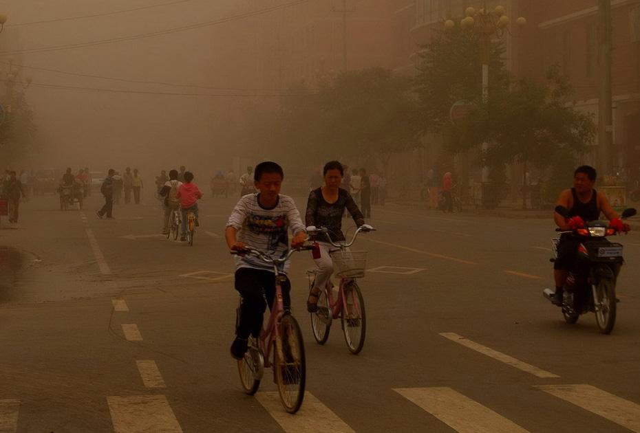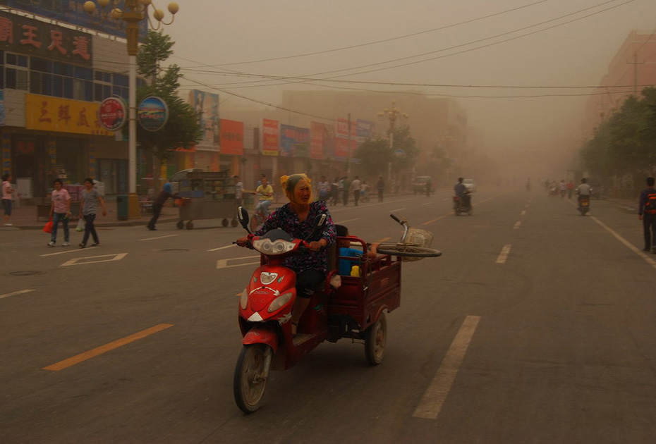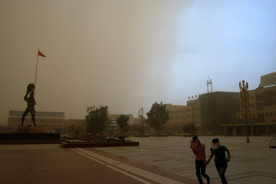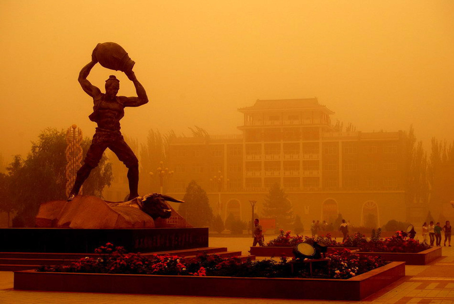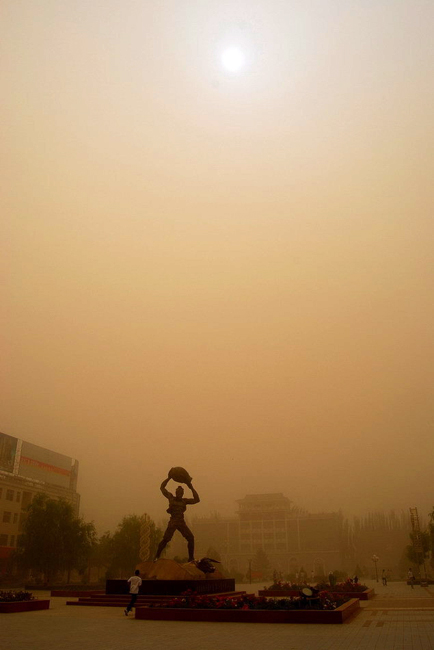 6月27日,甘肅民勤城區遭到沙塵襲擊。當日下午4時左右,甘肅省武威市民勤縣又遭沙塵暴襲擊,黃黑的沙塵迅速籠罩整個縣城,能見度大幅降低。今年4月24日甘肅民勤曾遭特大沙塵暴襲擊。 圖片來源:新華網 李軍 攝