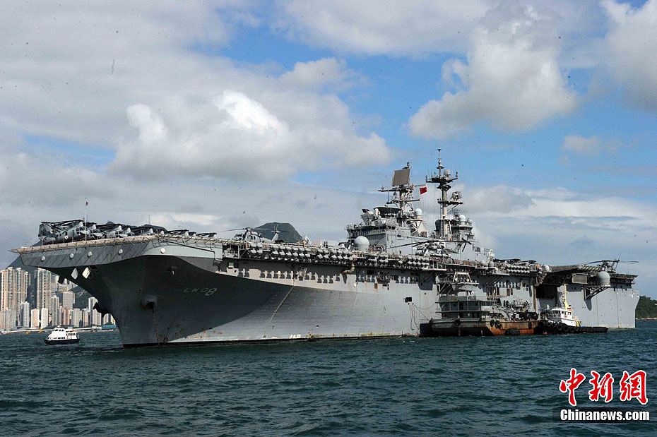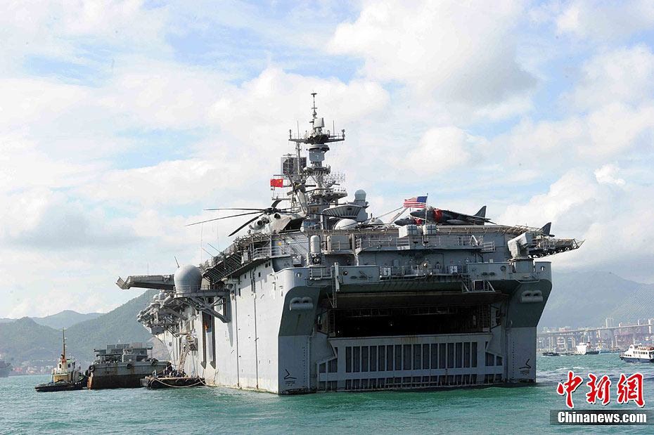 5月25日,美國(guó)海軍“馬金島號(hào)”兩棲攻擊艦(LHD8)抵達(dá)香港。“馬金島號(hào)”兩棲攻擊艦(LHD8)屬“黃蜂級(jí)”,排水量約為40,500噸,長(zhǎng)約844英尺,可部署陸戰(zhàn)隊(duì)直升機(jī)和固定翼作戰(zhàn)飛機(jī)。“馬金島號(hào)”兩棲攻擊艦為美國(guó)海軍首艘混合動(dòng)力戰(zhàn)艦。中新社發(fā) 任海霞 攝