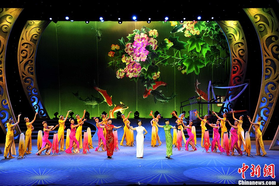 6月23日晚間,為期9天的第四屆中國成都國際非物質文化遺產節在成都閉幕。以表彰保護、發揚、傳承非物質文化遺產先進個人、集體為目的的“太陽神鳥”獎項也同時舉行了頒獎儀式。閉幕式上,來自泰國、西班牙、剛果(金)等國的表演者以及中國四川、內蒙古等地的藝術家,呈現了一場名為“文明的盛典”的藝術大餐。圖為閉幕式上的文藝演出。安源 攝