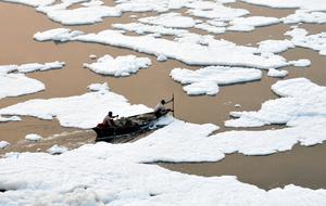 印度亞穆納河現有毒白色泡沫