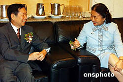 香港國務院港澳辦副主任陳佐洱(左)、香港律政司司長梁愛詩在放映會前親切交談。