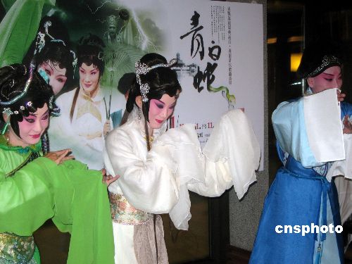 當(dāng)“小青”愛上許仙,《白蛇傳》的故事將怎樣演繹?由臺(tái)灣由知名編劇曾永義、中國大陸一級(jí)導(dǎo)演沈斌、作曲王世明聯(lián)袂打造、臺(tái)灣戲曲學(xué)院師生共同主演的新編京劇《青白蛇》將于下月在臺(tái)北公演。10月29日,《青白蛇》的主要演員在記者會(huì)上亮相。中新社發(fā) 王林 攝