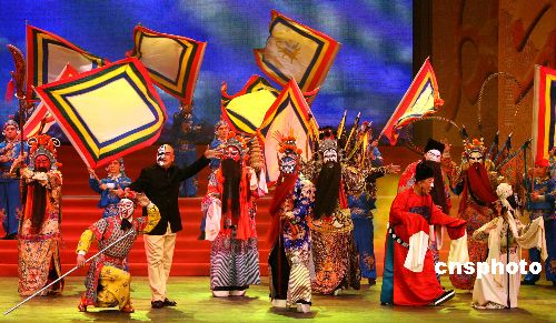 十一月四日晚,在青島參加“第五屆國際華文教育研討會”的與會代表們在青島市人民會堂觀看了《風雅中華》文藝晚會,演員精湛的演出博得代表們的陣陣掌聲。中新社發 張勤 攝