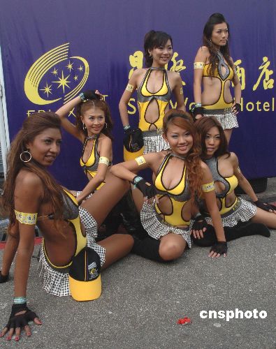 十一月十八日,幾位美女在第五十四屆澳門格蘭披治大賽車上亮相。性感的服飾。苗條的身材,動人的眼神,爭艷斗麗,各領風騷。中新社發 史利 攝