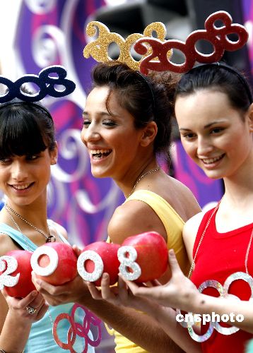 十二月二十日,數(shù)位蘋果倒數(shù)女郎佩戴奧運五環(huán)眼睛在香港時代廣場,為除夕夜(12月31日)該地將舉辦的“全港倒數(shù)2008迎奧運”活動做新聞發(fā)布。據(jù)介紹,今年會以“北京香港奧運同心”為主題,聯(lián)同北京電視臺同步直播當晚盛事,香港電臺將制作極盡視聽效果的三個小時的節(jié)目,云集多達35個以上的演唱單位、金牌運動員等一起表演團結(jié)、和平、友誼的奧運精神。屆時將會有超過10萬人聚集觀看該活動。中新社發(fā) 王麗南 攝