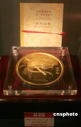 一月二十七日,由中國臺北奧委會、臺灣大洋金銀幣有限公司主辦的“第二十九屆北京奧運(yùn)會金銀紀(jì)念幣慈善拍賣會在臺北誠品信義店舉行。圖為在拍賣會上拍賣,由中國人民銀行發(fā)行,全球發(fā)行總量只有十八枚的十公斤重鼠年紀(jì)念金幣,拍賣底價新臺幣一千二百二十萬元。中新社發(fā) 陳立宇 攝